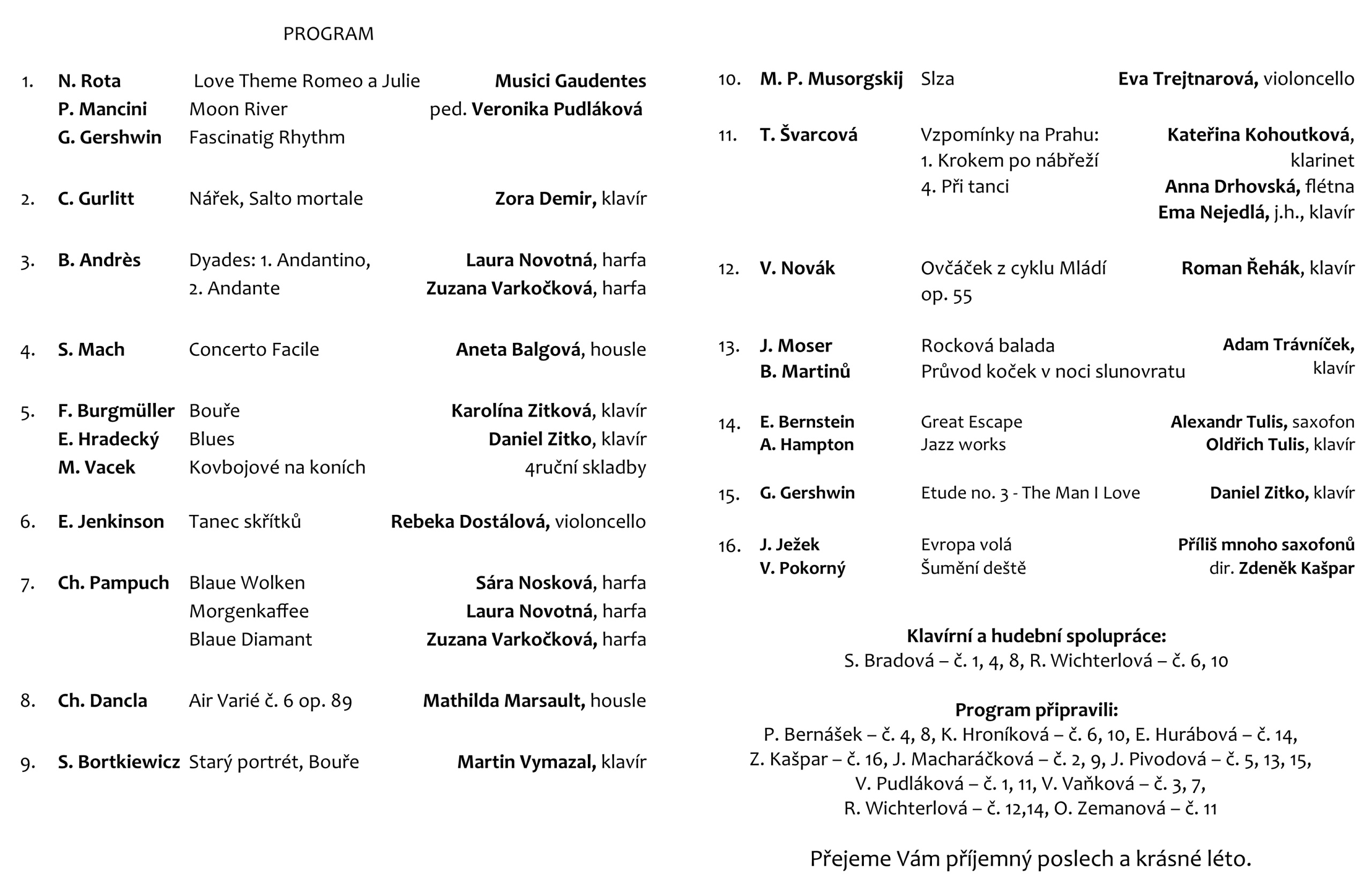 2. závěrečný koncert 17. června Refektář profesního domu – program