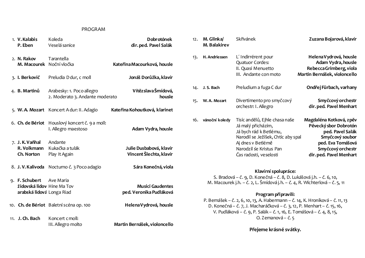 3. ADVENTNÍ KONCERT – HAMU Sál Martinů 18. prosince – program