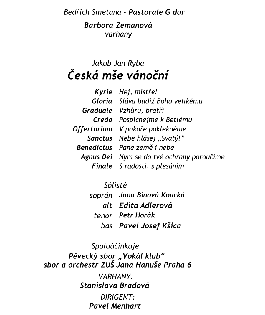 Česká mše vánoční 8. prosince – program