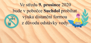 Ve středu 9. prosince 2020 bude v pobočce Suchdol probíhat výuka distanční formou z důvodu odstávky vody.