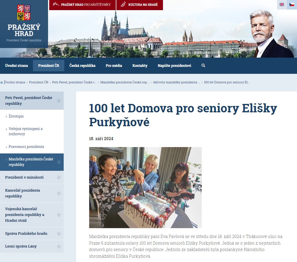 na akci Domova seniorů Elišky Purkyňové pořádané ke 100. výročí jeho založení. Na této slavnosti