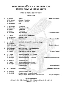 Klavírní koncert soutěžících v soutěži MŠMT 15. března – program