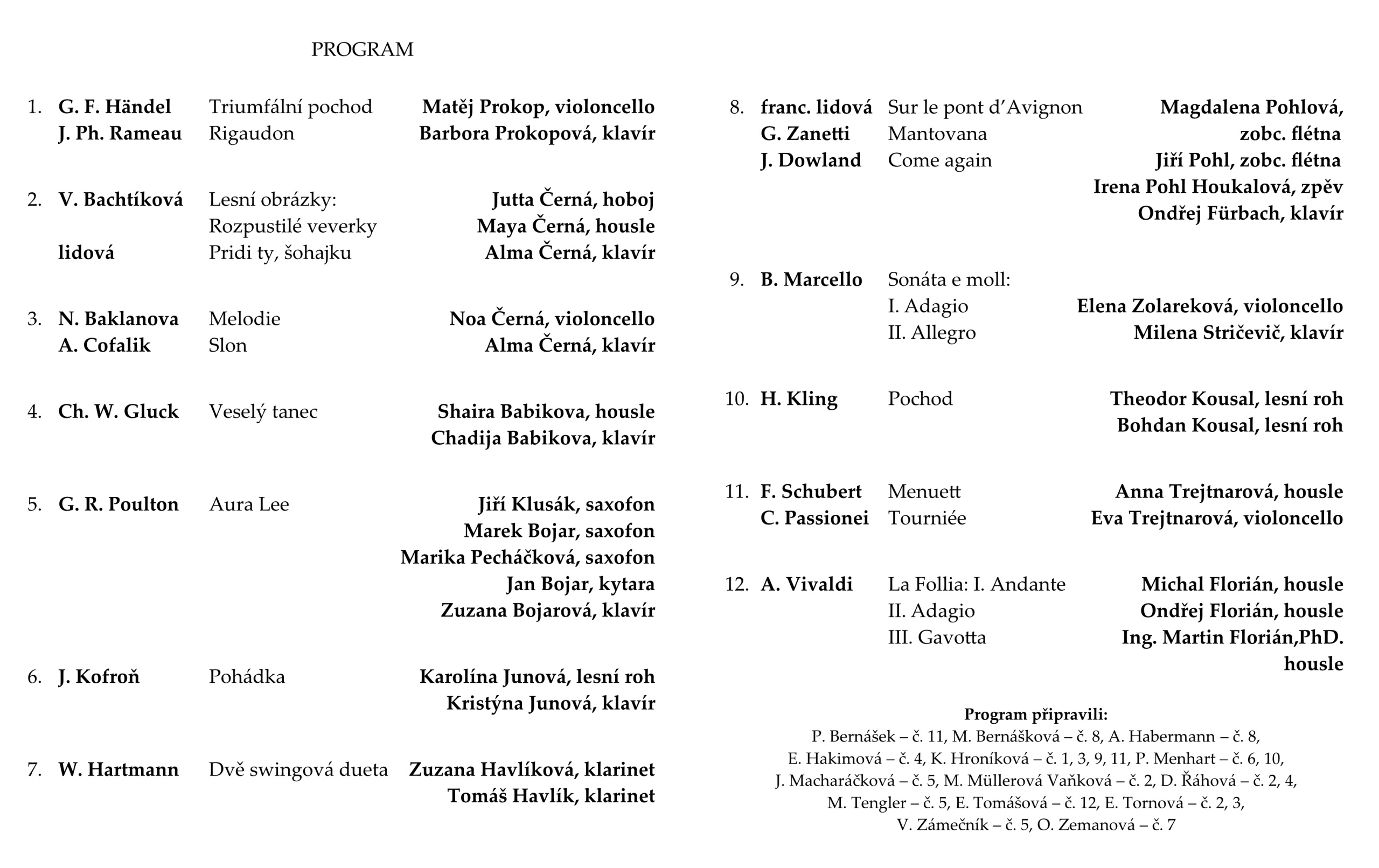 Koncert Hraje celá rodina 28. února – program