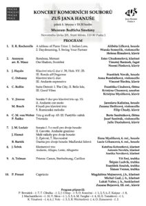 Koncert komorních souborů ZUŠ Jana Hanuše 6. března – program