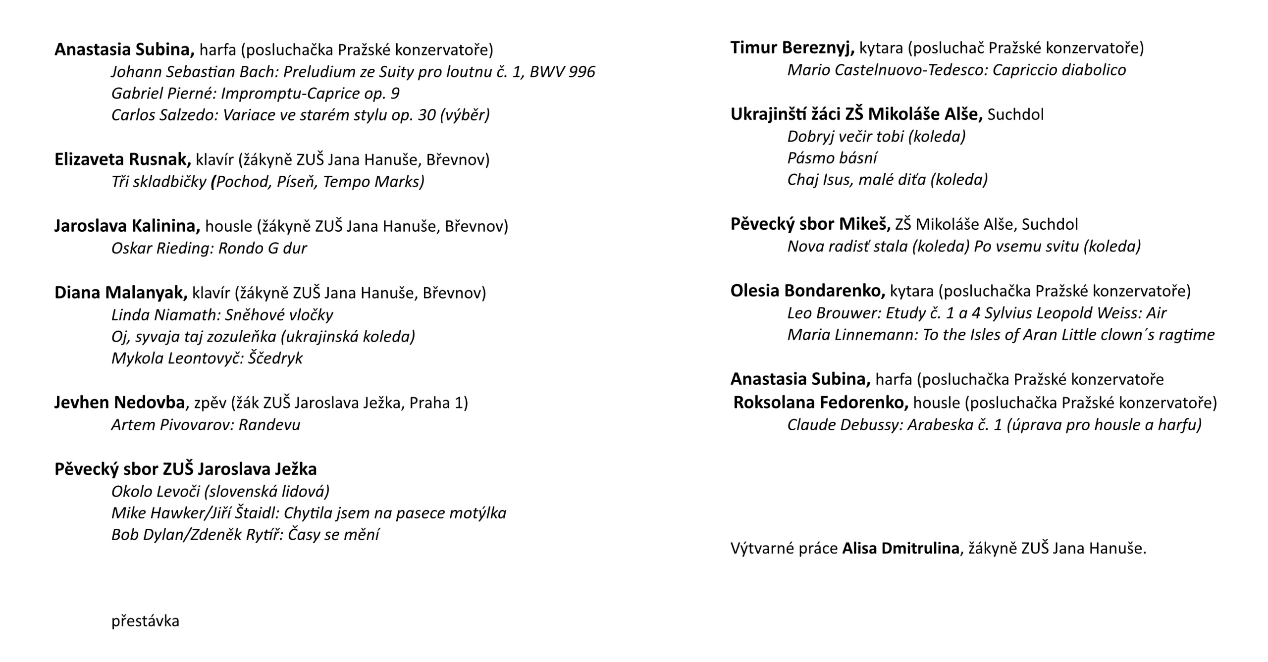 Koncert UKRAJINA HRAJE středa 18. ledna – program