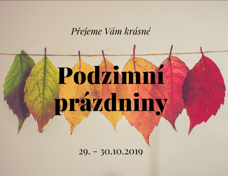 V pondělí 28.10.2019 je státní svátek a na něj pak navazují dvoudenní podzimní prázdniny (29.-30.2019). Škola pak bude po třídenní pauze otevřená od čtvrtka 31.10.2019.