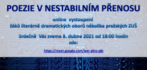Poezie v nestabilním přenosu – online vystoupení žáků literárně dramatických oborů několika pražských ZUŠ.