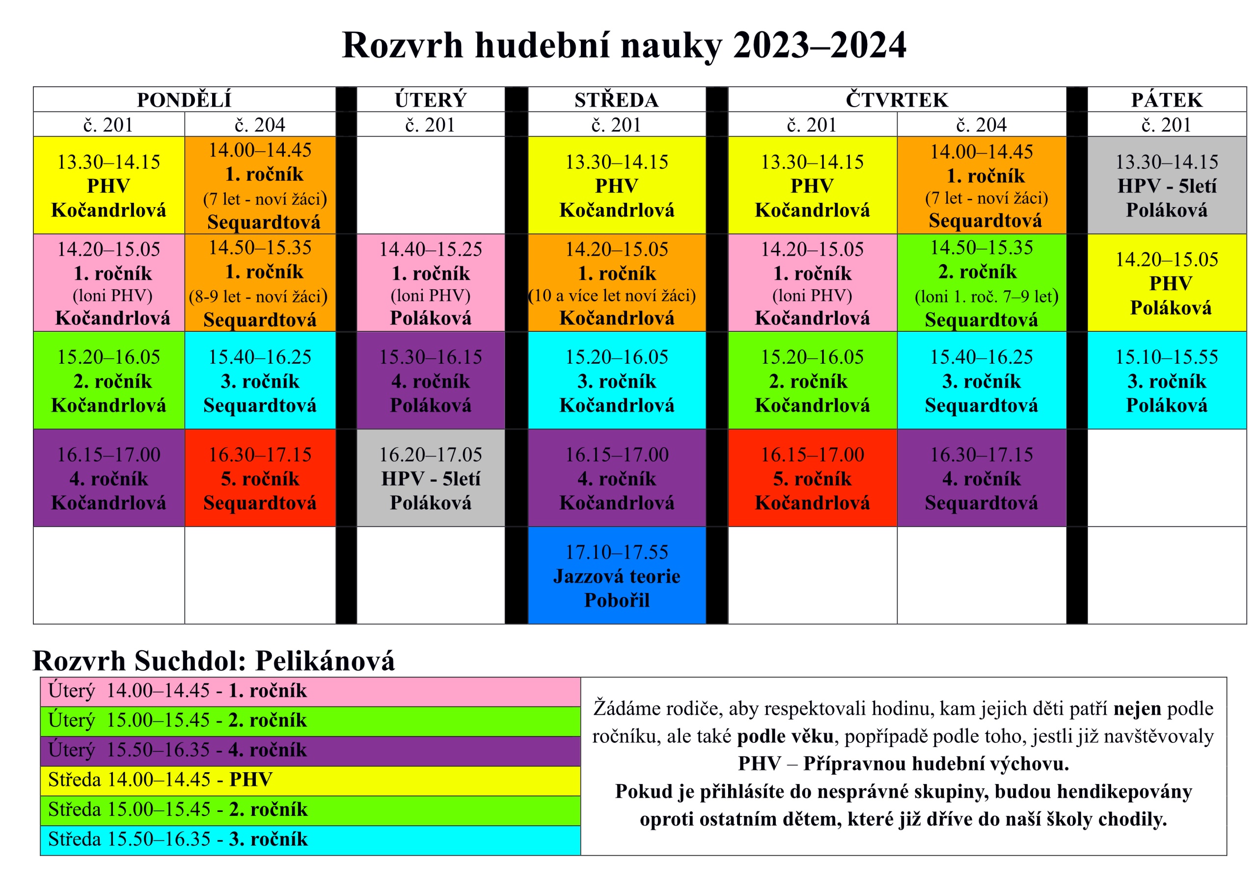 Podle tohoto rozvrhu se začne hudební nauka vyučovat od 18. září 2023