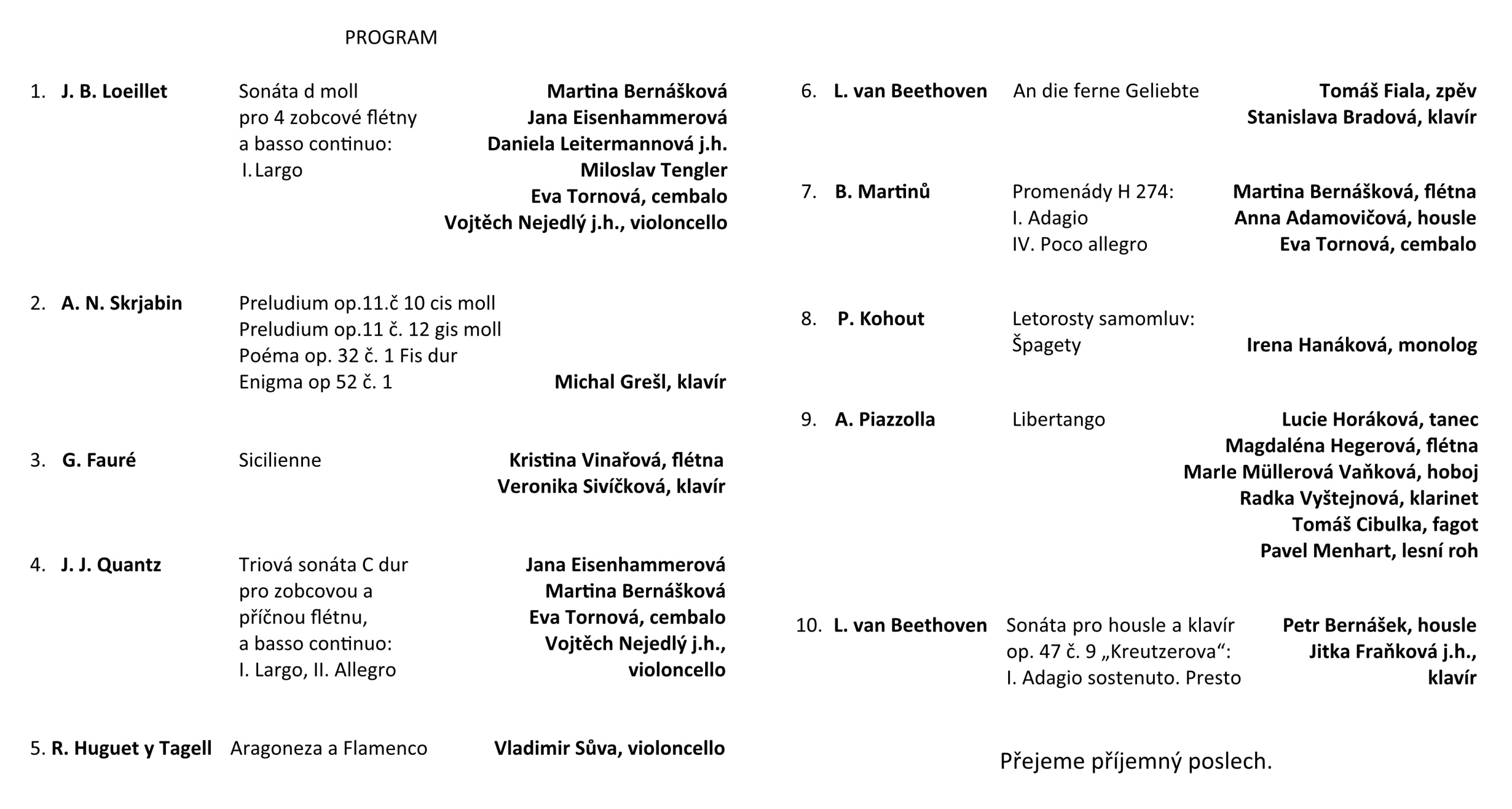 Koncert učitelů 24. října 2022 – program