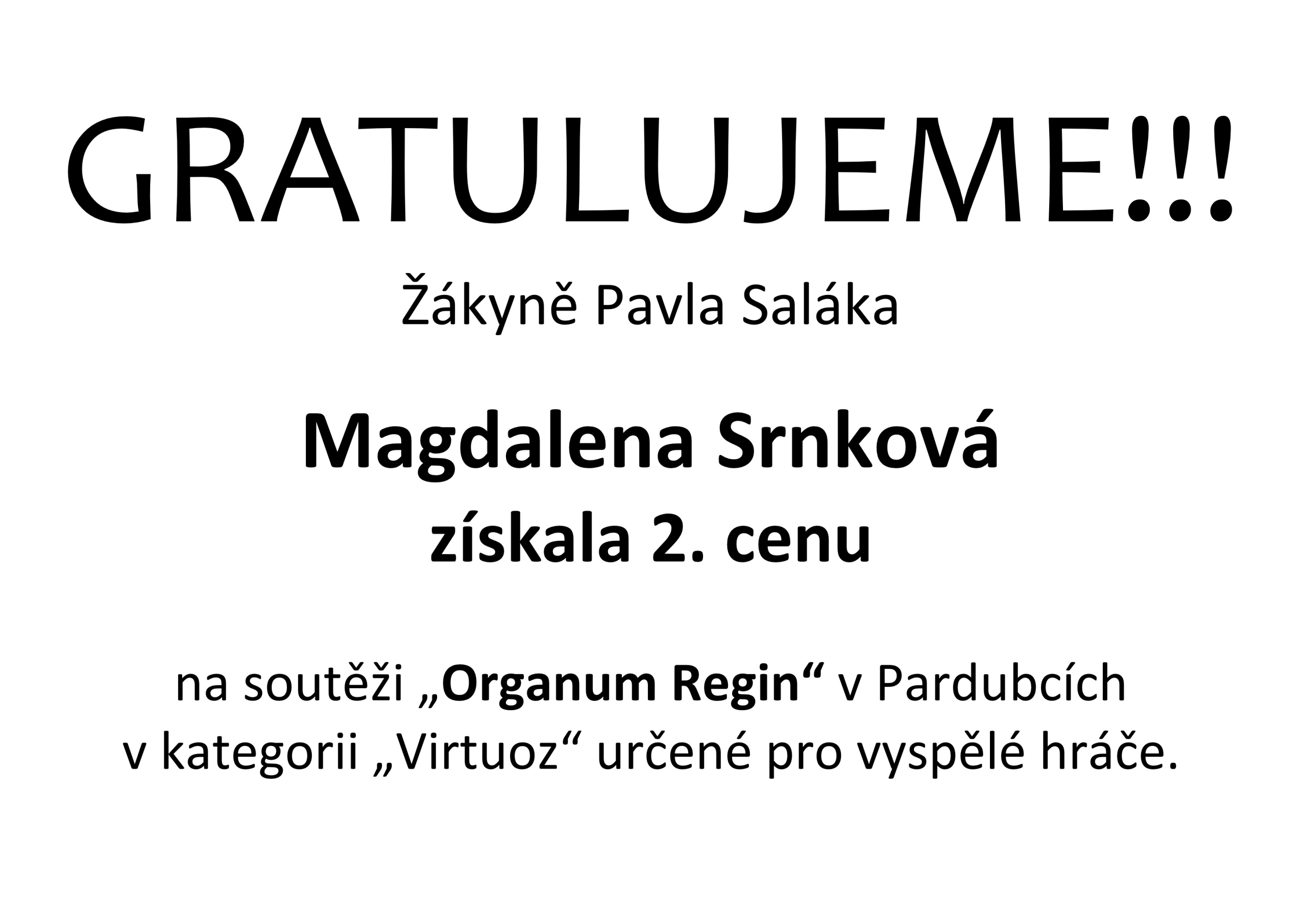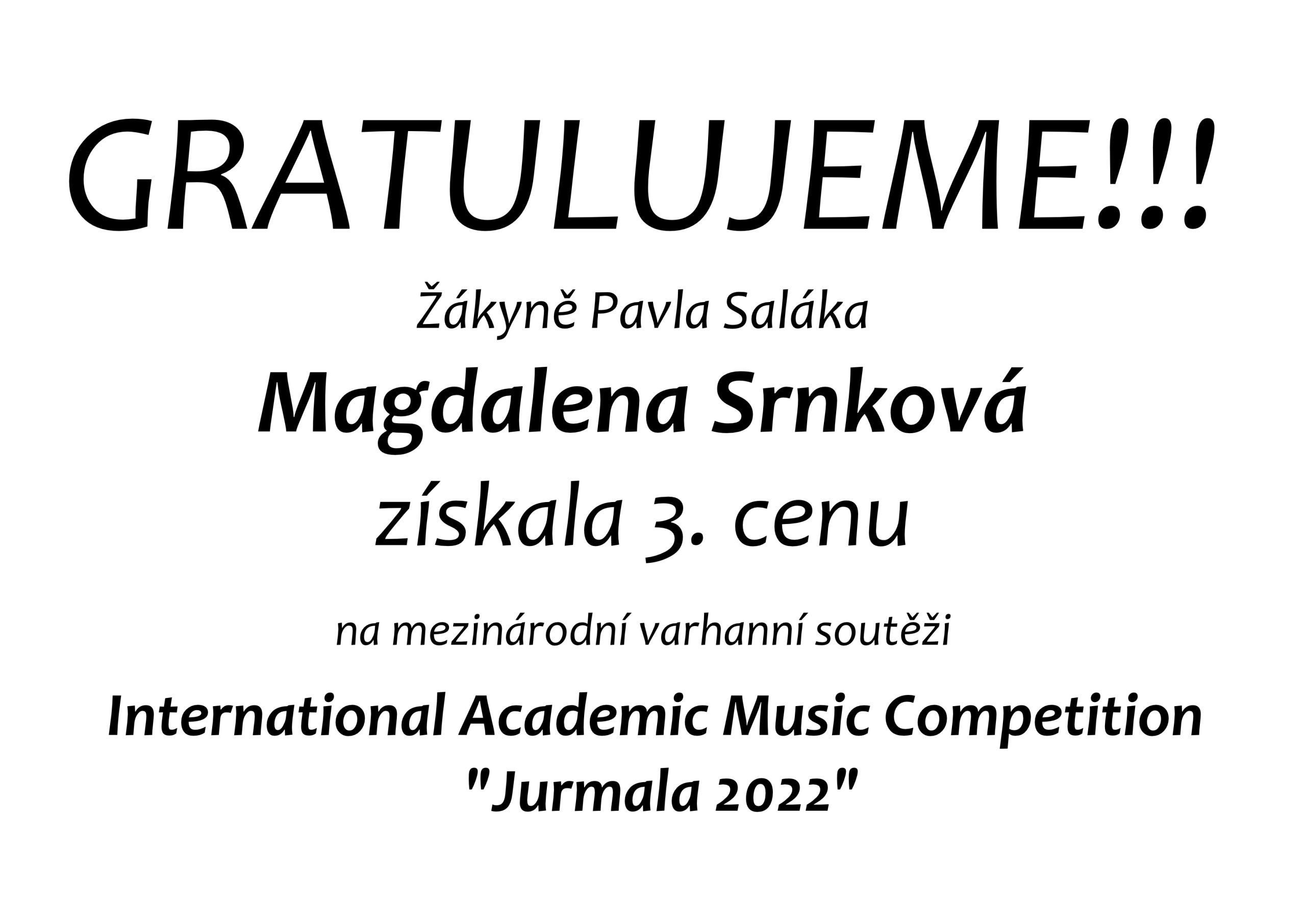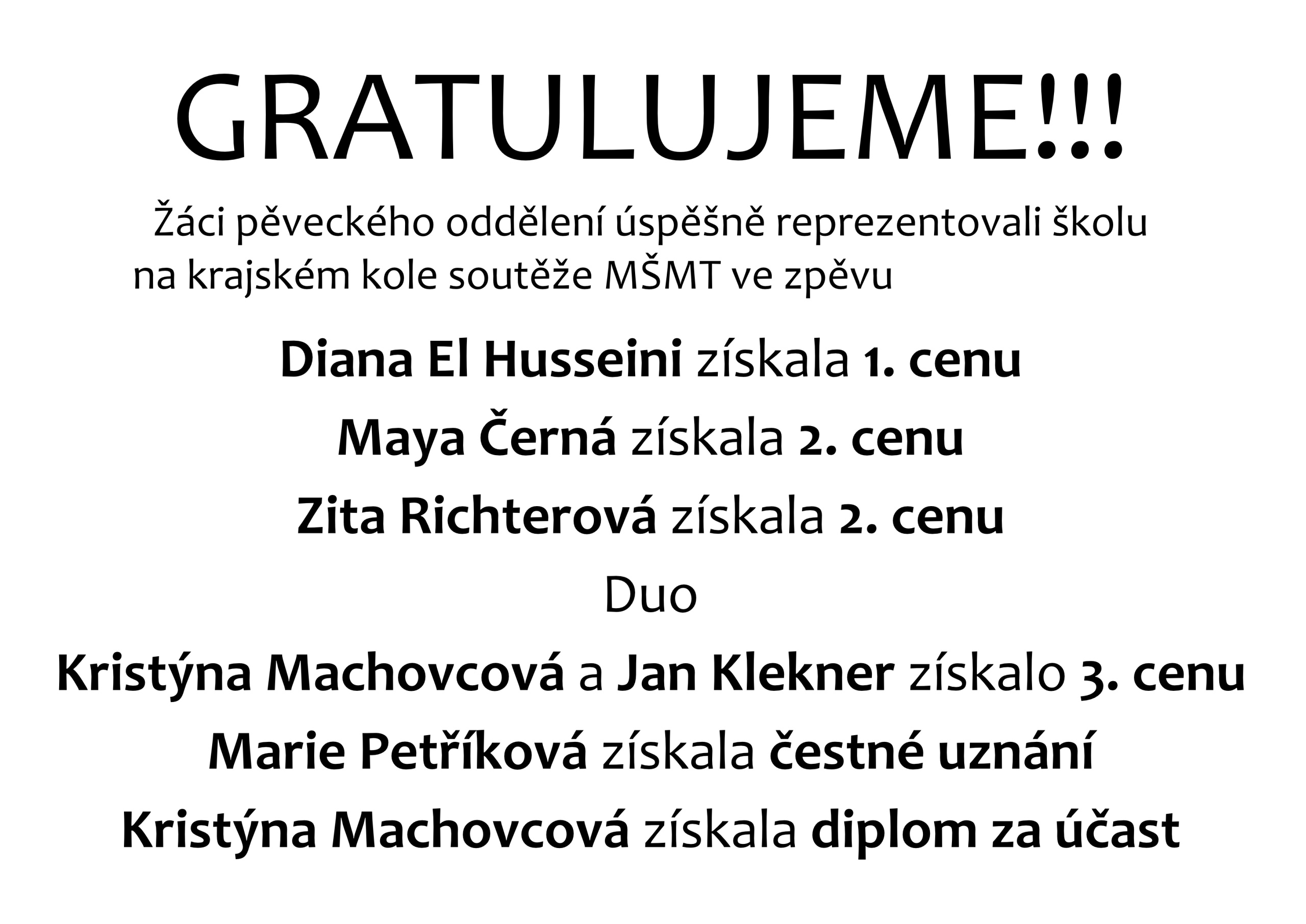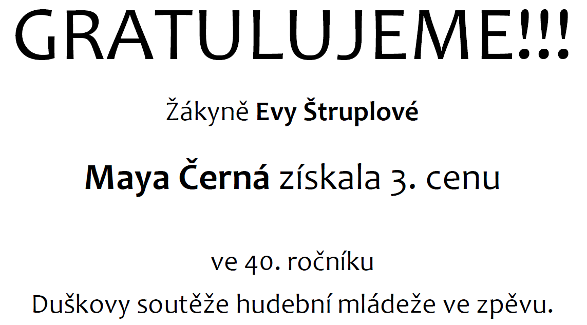 Gratulujeme – úspěch ve 40. ročníku Duškovy soutěže hudební mládeže ve zpěvu – M. Černá