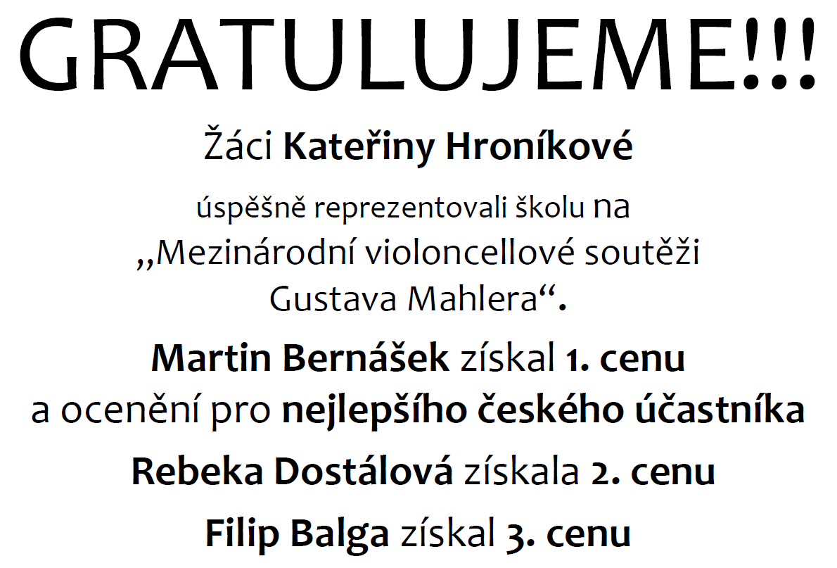 Gratulujeme – úspěchy žáků Kateřiny Hroníkové v Mezinárodní violoncellové soutěže Gustava Mahlera