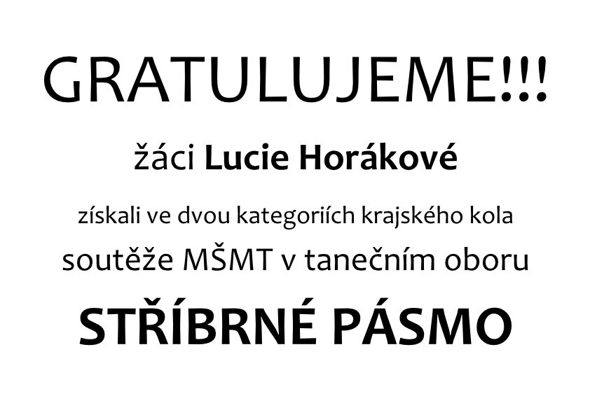 Gratulujeme – úspěchy žáků Lucie Horákové v krajském kole soutěže MŠMT v tanečním oboru