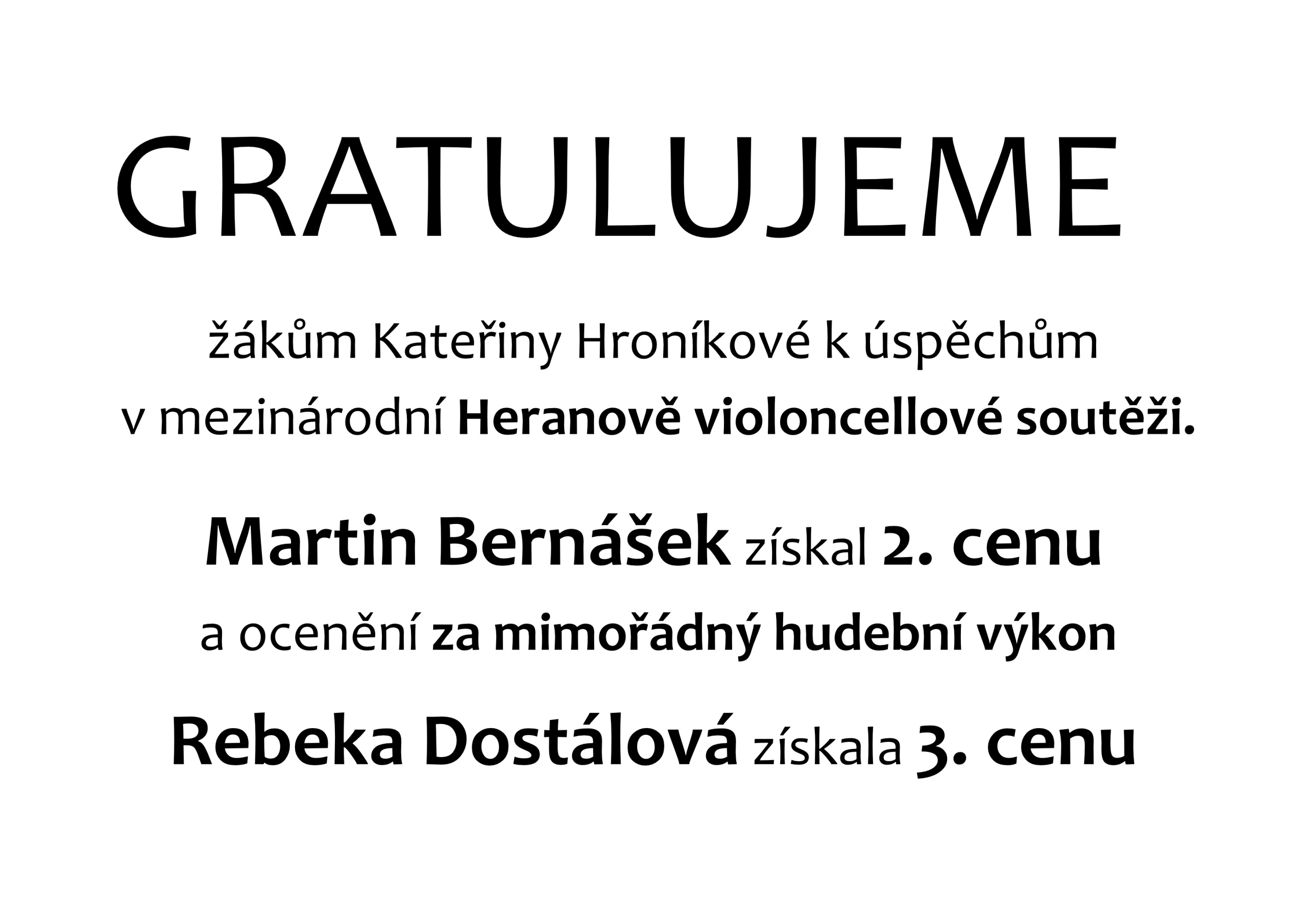 Gratulujeme – žákům Kateřiny Hroníkové k úspěchům v mezinárodní Heranově violoncellové soutěži