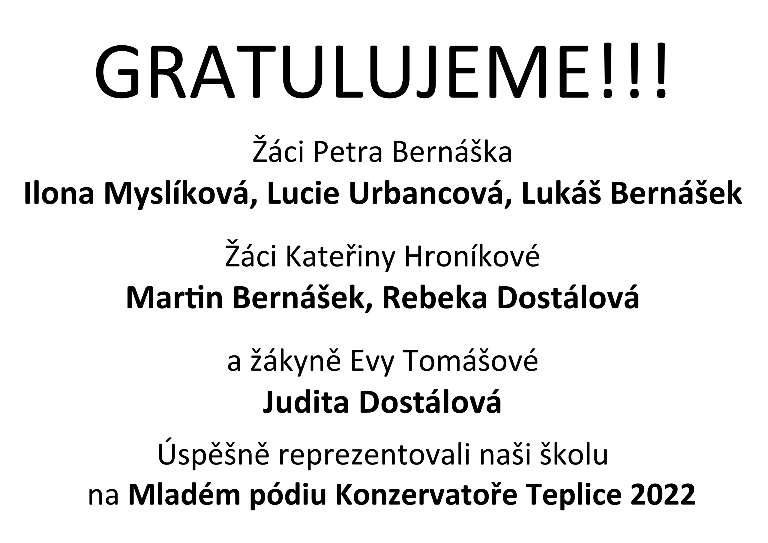 Gratulujeme – našim žákům k úspěšnému reprezentování školy na Mladém pódiu Konzervatoře Teplice 2022