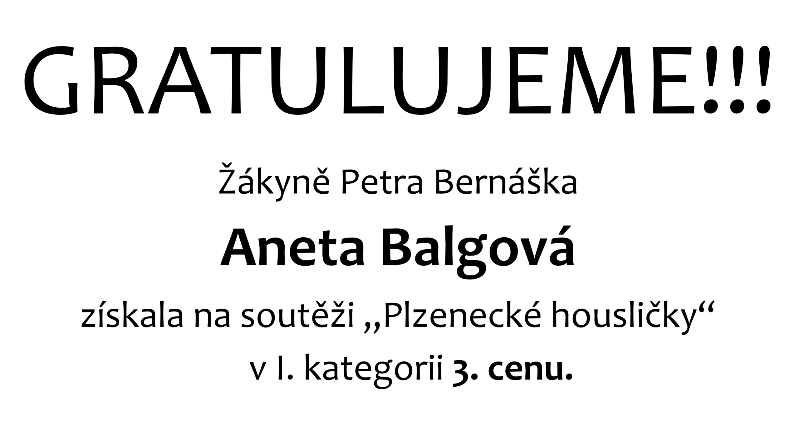 Gratulujeme – úspěch v soutěži „Plzeňské housličky“ – Aneta Balgová