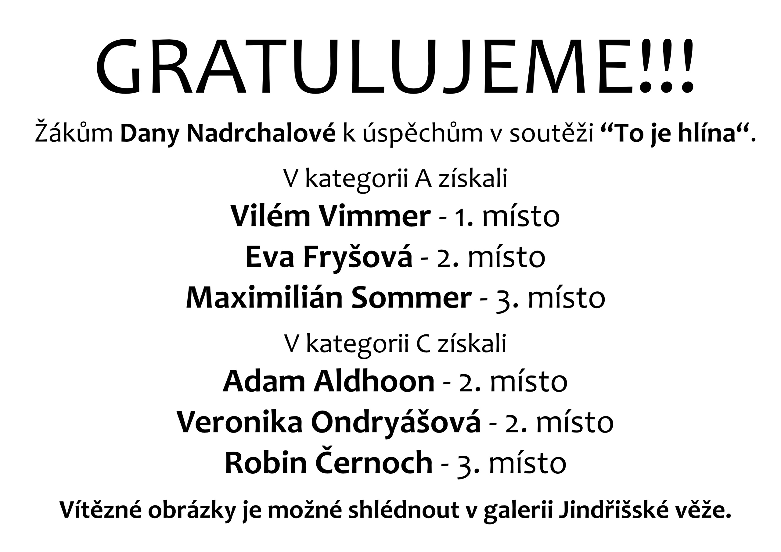 Gratulujeme – žákům Dany Nadrchalové k úspěchům v soutěži „To je hlína“