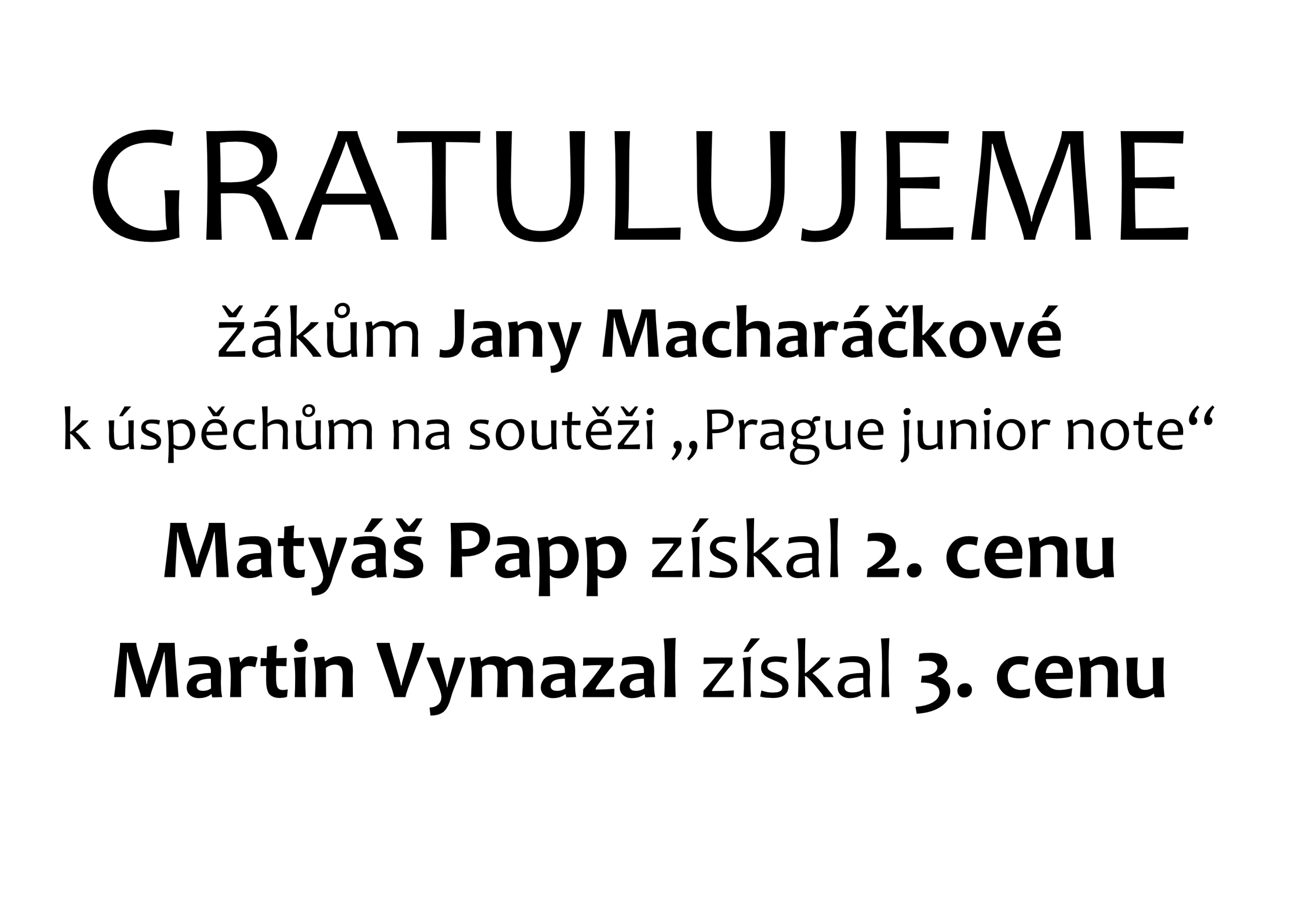 Gratulujeme žákům Jany Macharáčkové k úspěchům na soutěži „Prague junior note“