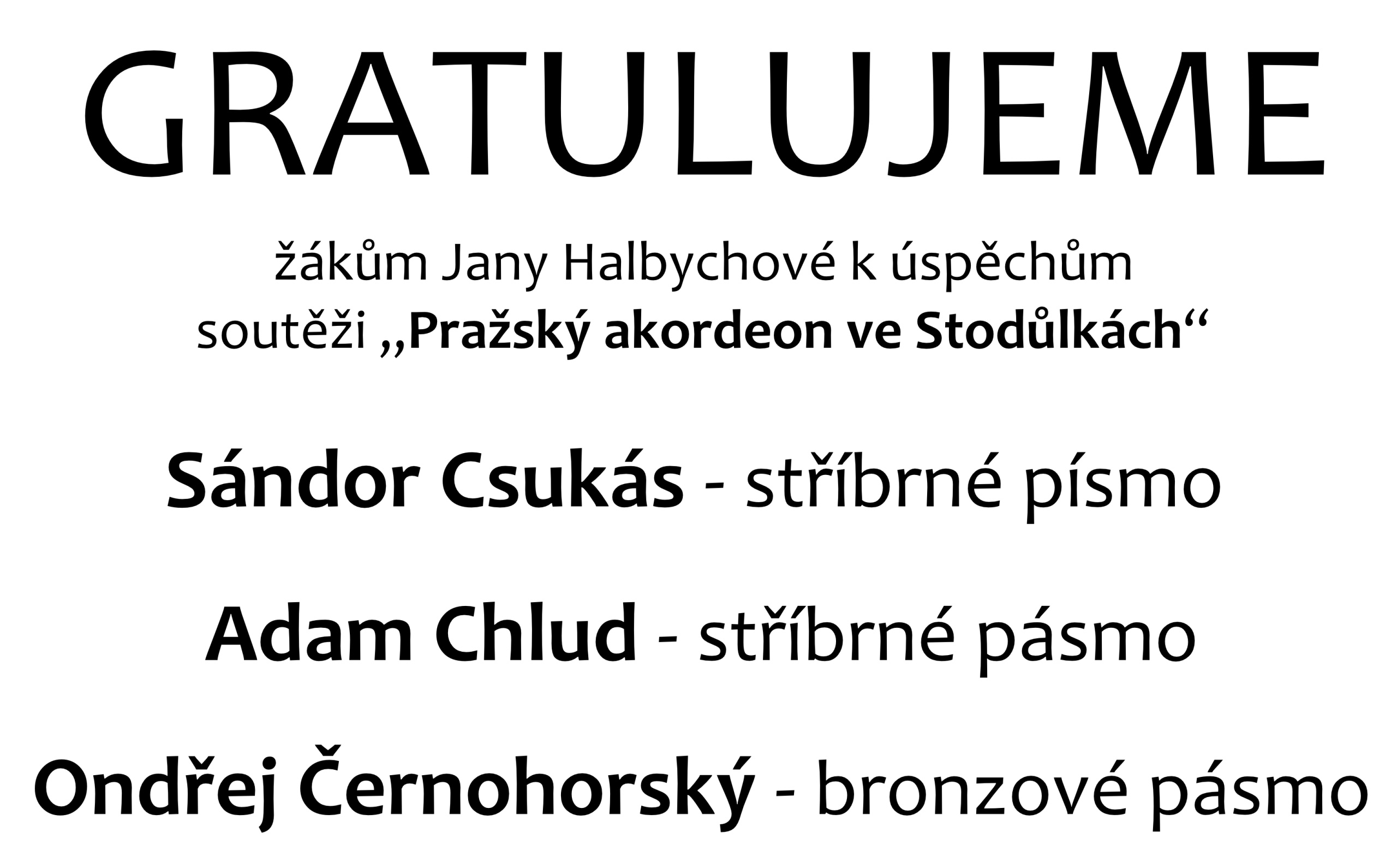 Gratulujeme – žákům Jany Halbychové k úspěchům v soutěži „Pražský akordeon ve Stodůlkách“