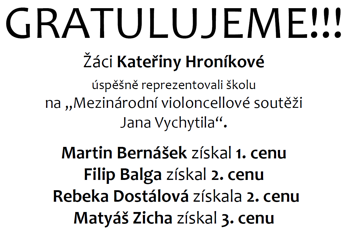 Gratulujeme – Úspěšná účast našich žáků na Mezinárodní violoncellové soutěži Jana Vychytila