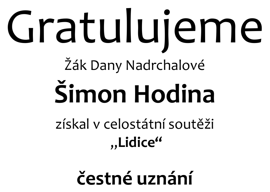 Gratulujeme – úspěch v celostátní soutěží „Lidice“: Šimon Hodina
