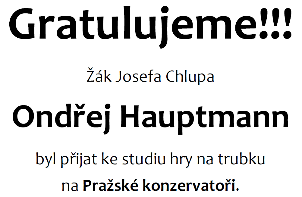 Gratulujeme – přijetí na konzervatoř: Ondřej Hauptmann