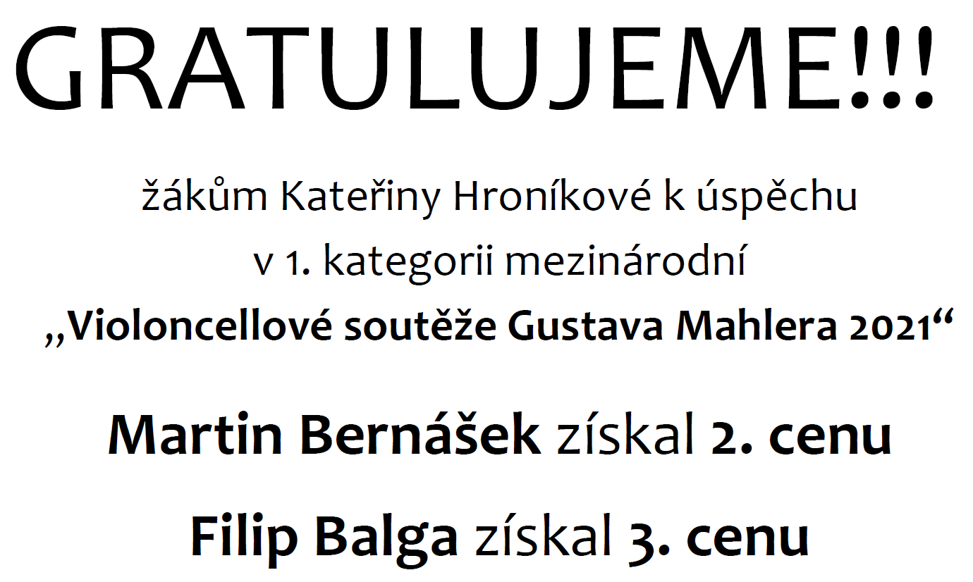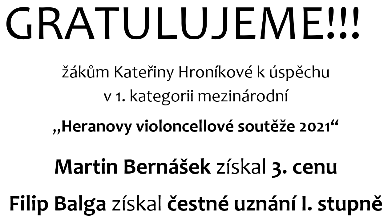Gratulujeme – úspěchy v soutěži „Heranova violoncellová soutěž“ : Martin Bernášek, Filip Balga