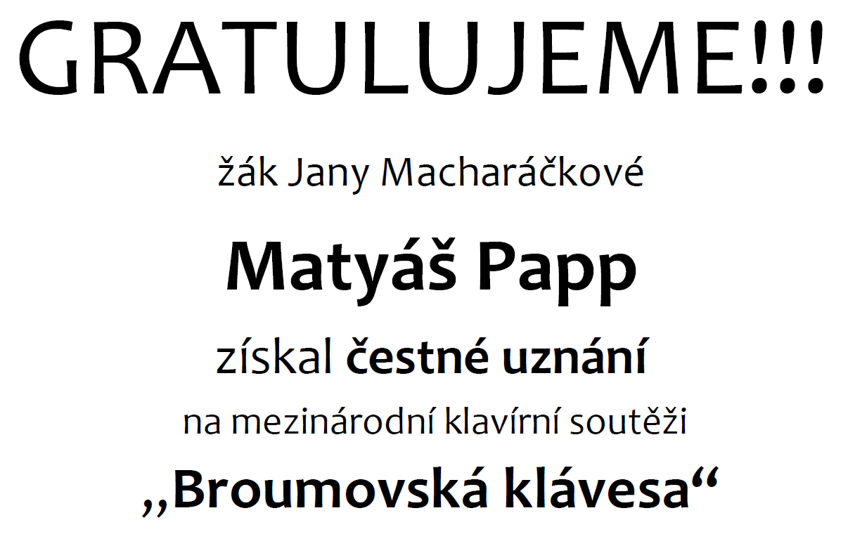Gratulujeme – úspěch v soutěži „Broumovská klávesa“: Matyáš Papp