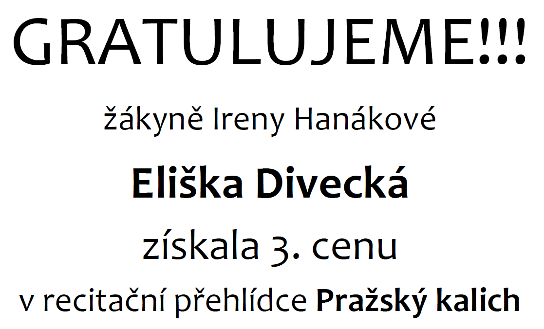 Gratulujeme – úspěch v recitační přehlídce Pražský kalich: Eliška Divecká