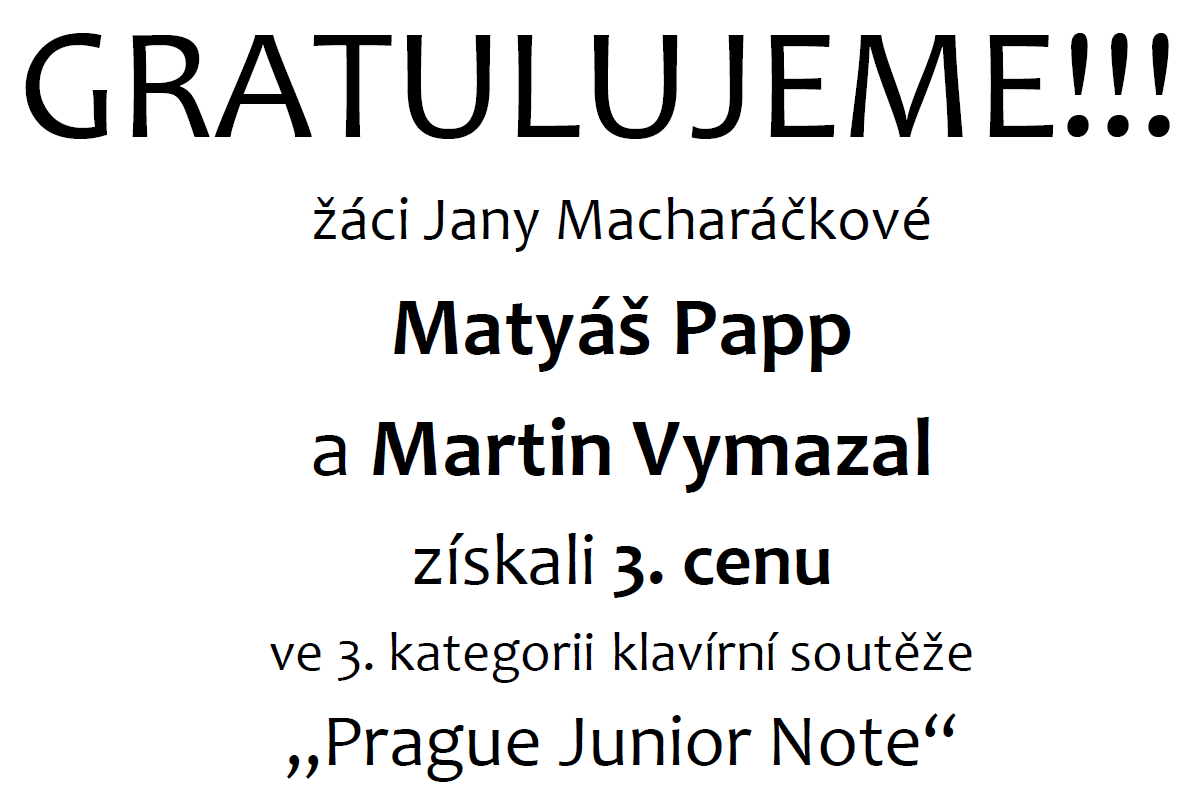 Gratulujeme – úspěchy našich žáků v soutěži Prague Junior Note: Matyáš Papp, Martin Vymazal