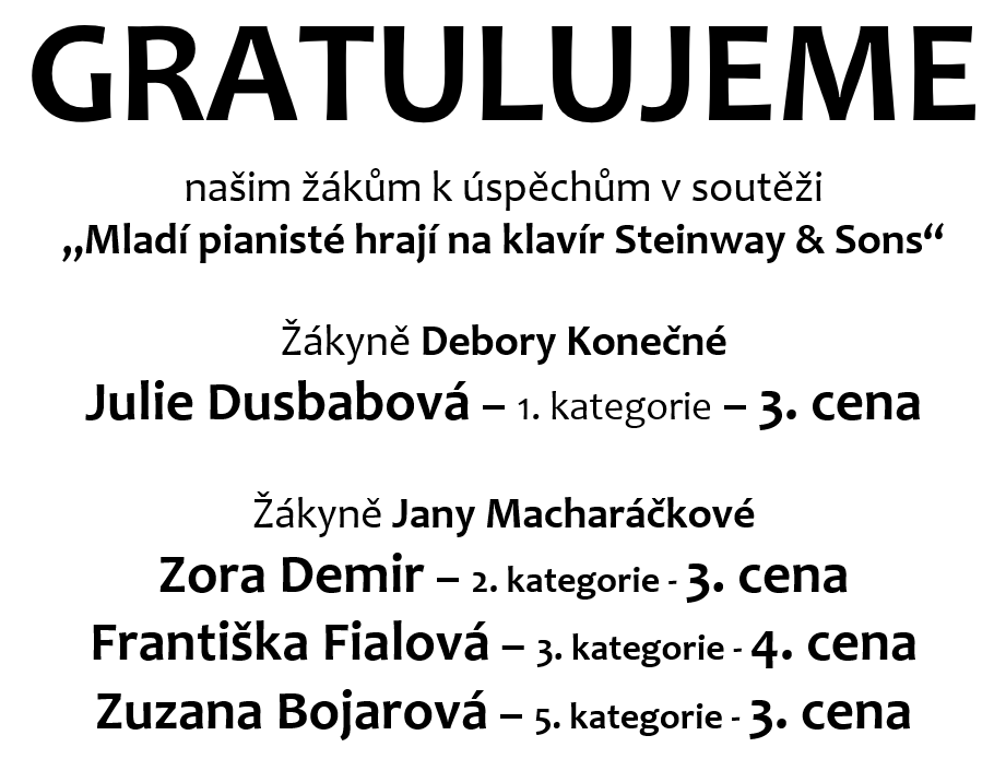 Gratulujeme – úspěchy našich žáků v soutěži „Mladí pianisté hrají na klavír Steinway & Sons“