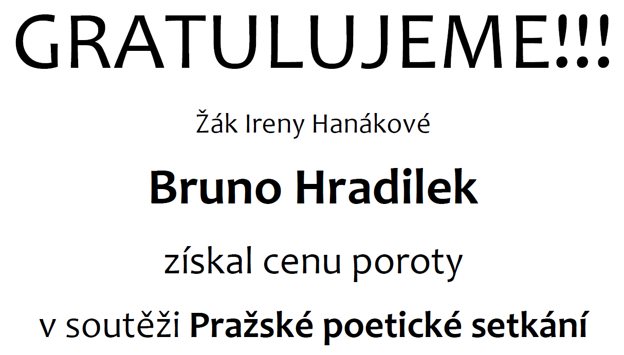 Gratulujeme – úspěch v soutěži Pražské poetické setkání: Bruno Hradilek