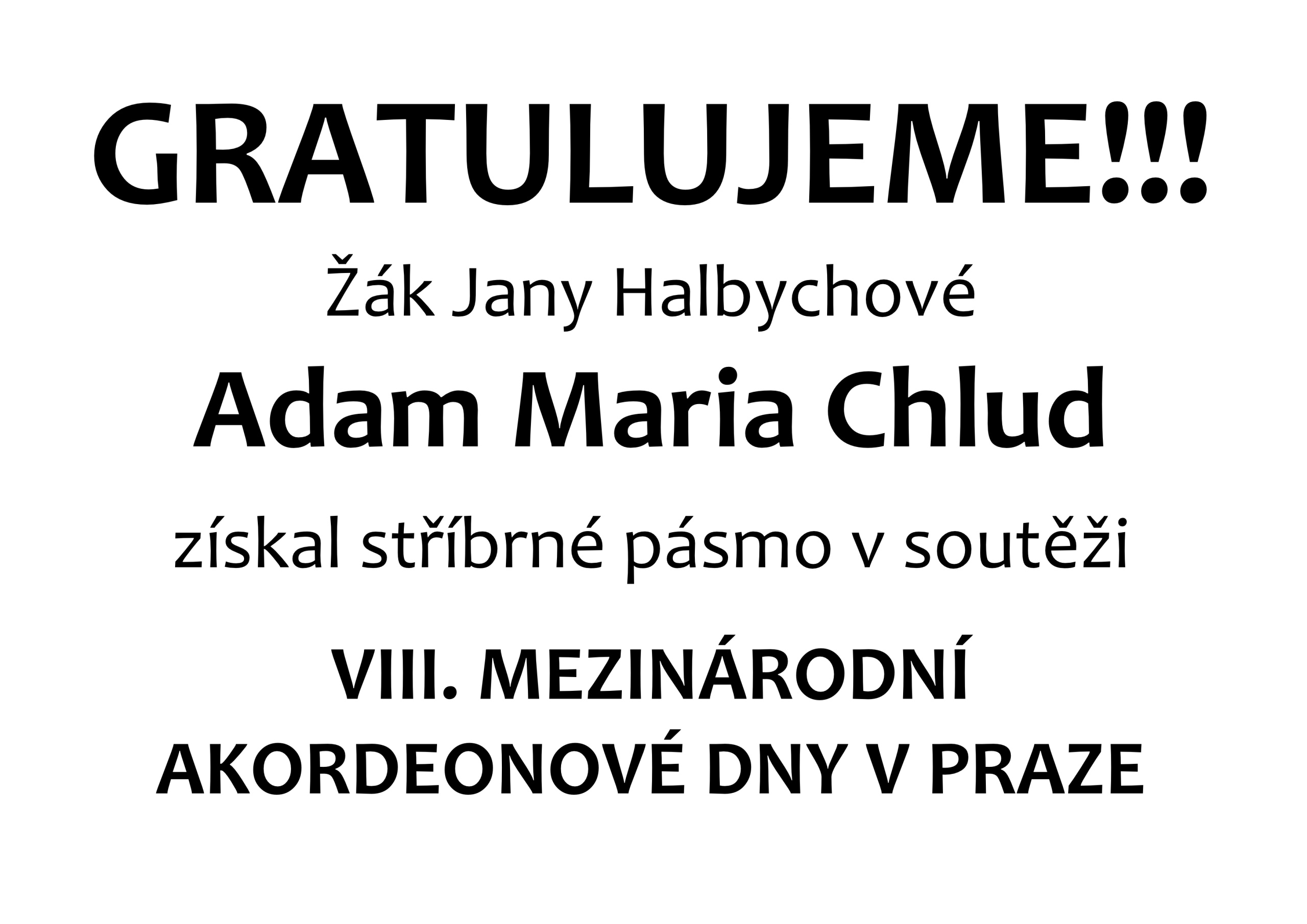 Gratulujeme – Adam Maria Chlud získal stříbrné pásmo v soutěži VIII. MEZINÁRODNÍ AKORDEONOVÉ DNY V PRAZE