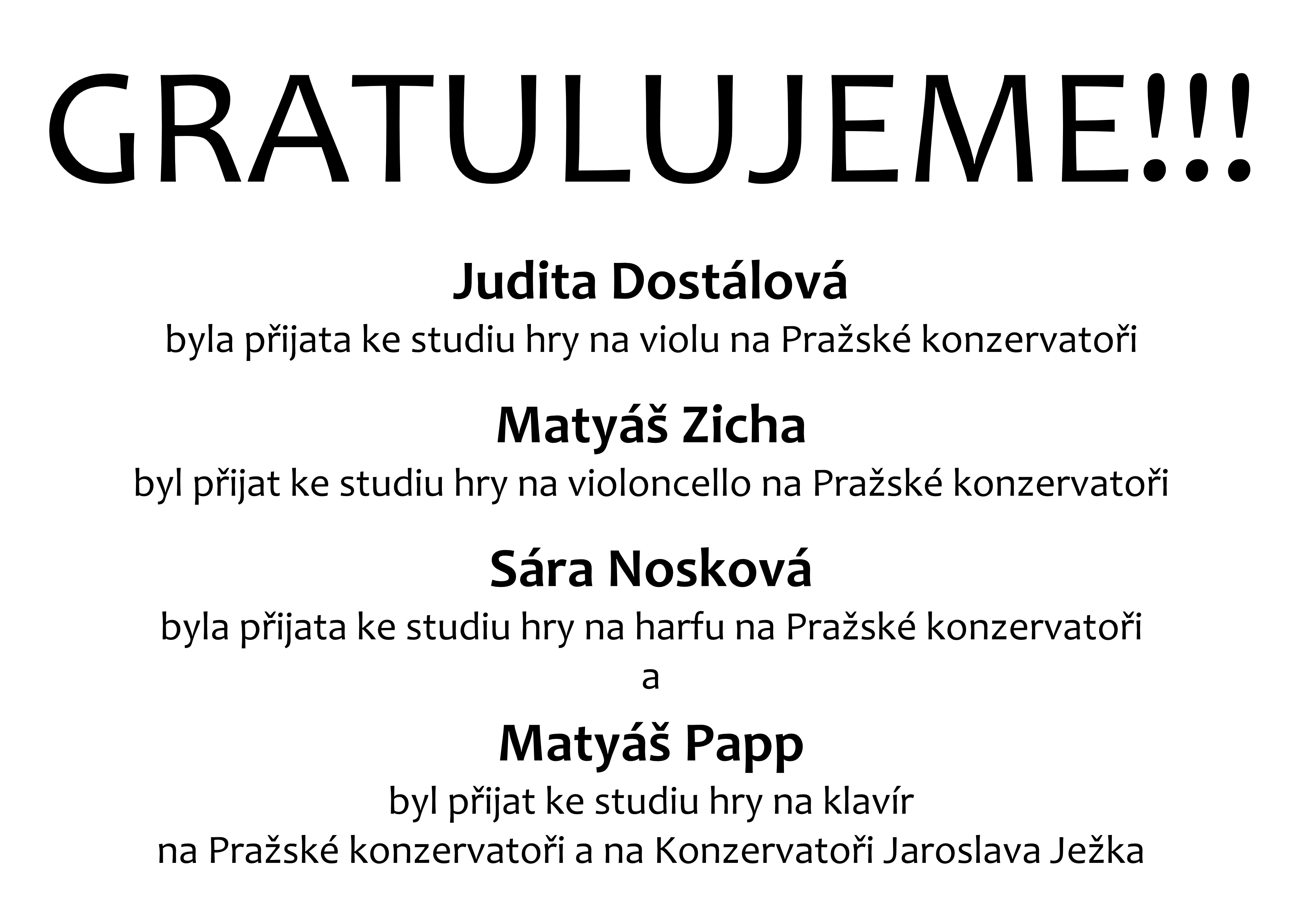 Gratulujeme – našim žákům k přijetí na konzervatoř