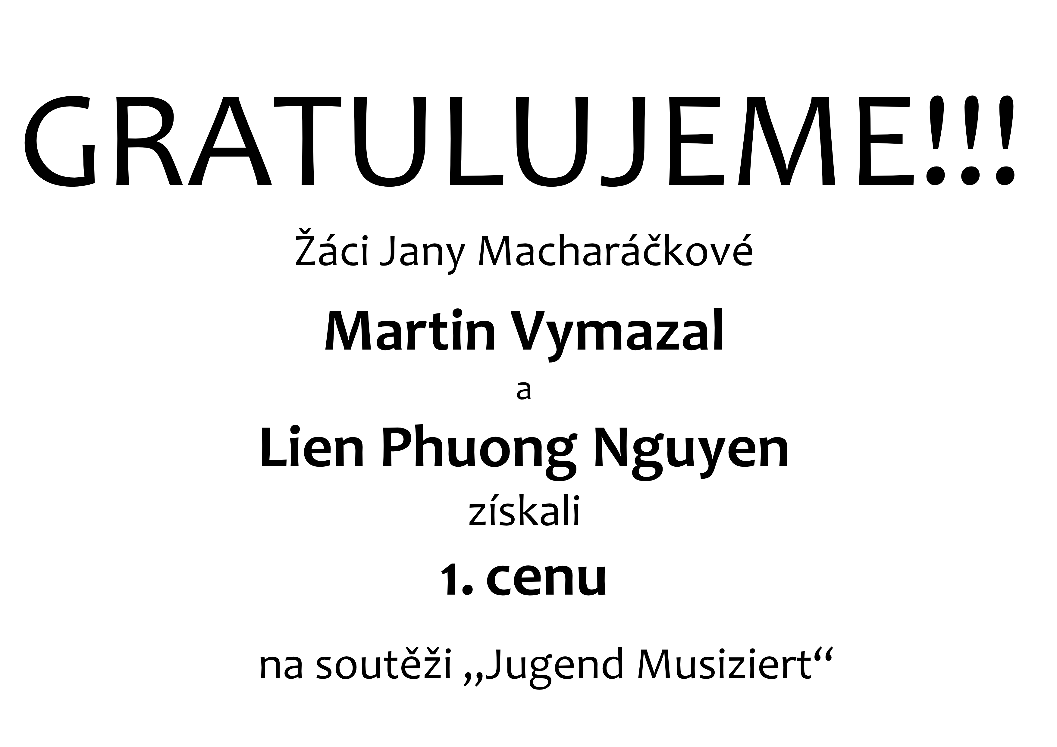 Gratulujeme – žákům Jany Macharáčkové – 1. cena v soutěži „Jugend Musiziert“
