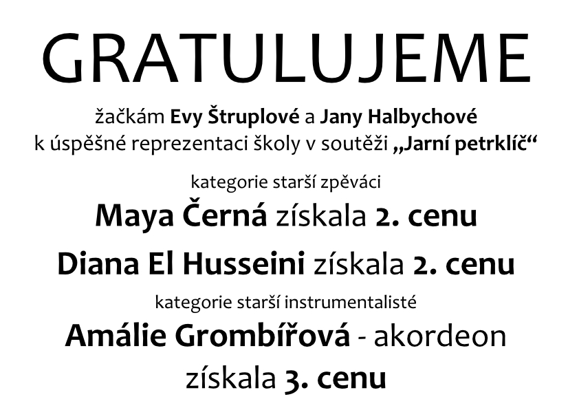 Gratulujeme –  žákyním Evy Štruplové a Jany Halbychové k úspěšné reprezentaci školy v soutěži „Jarní petrklíč“
