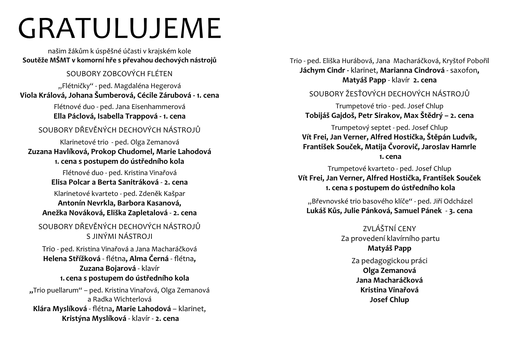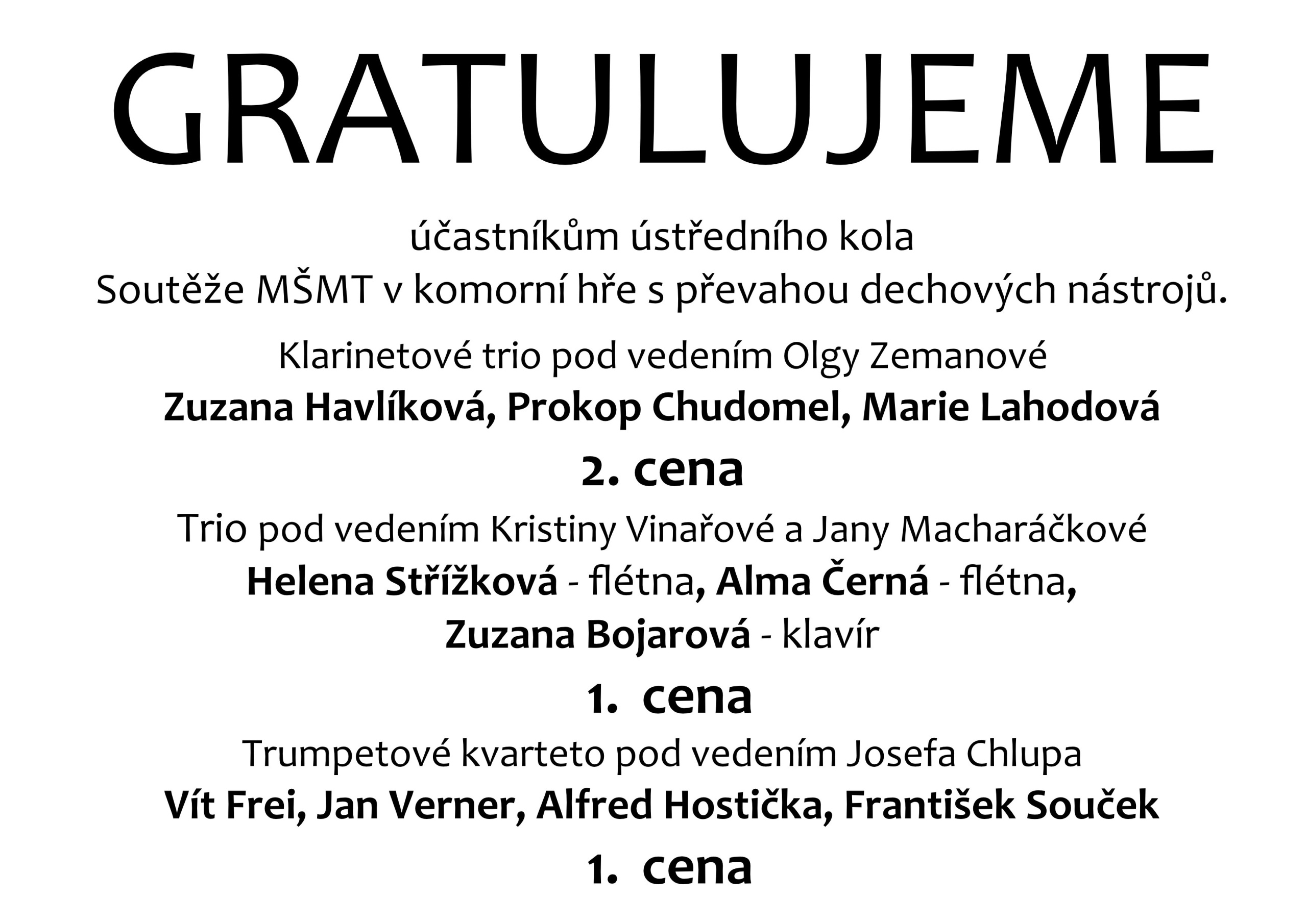 Gratulujeme -účastníkům ústředního kola Soutěže MŠMT v komorní hře s převahou dechových nástrojů