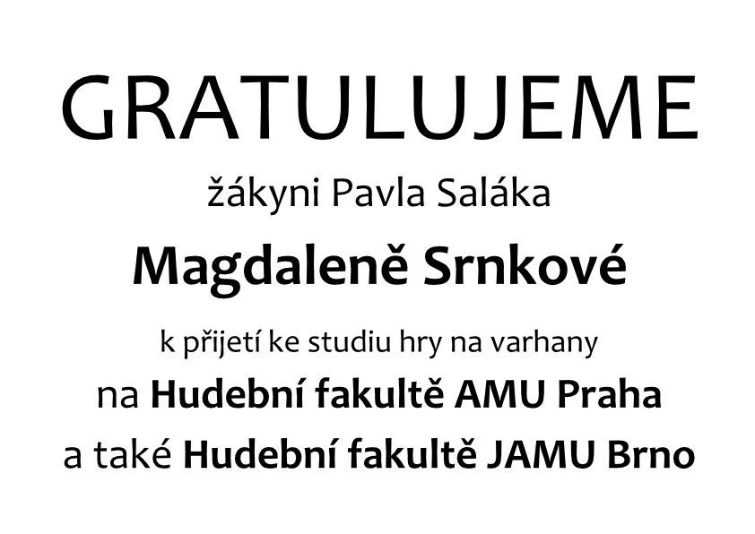 Gratulujeme –  Magdaleně Srnkové k přijetí na hudební fakultu AMU Praha a také na hudební fakultu JAMU Brno