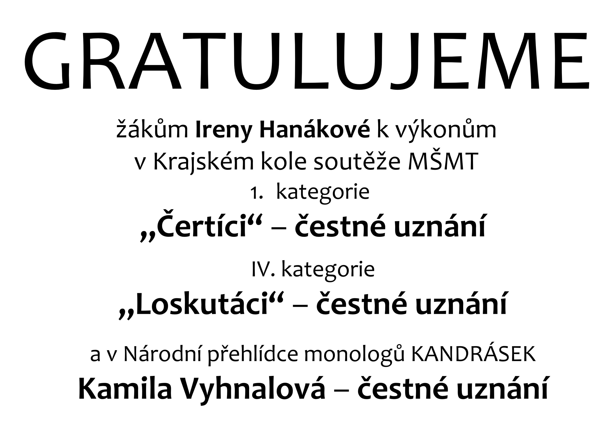 Gratulujeme –  žákům Ireny Hanákové k výkonům v Krajském kole soutěže MŠMT