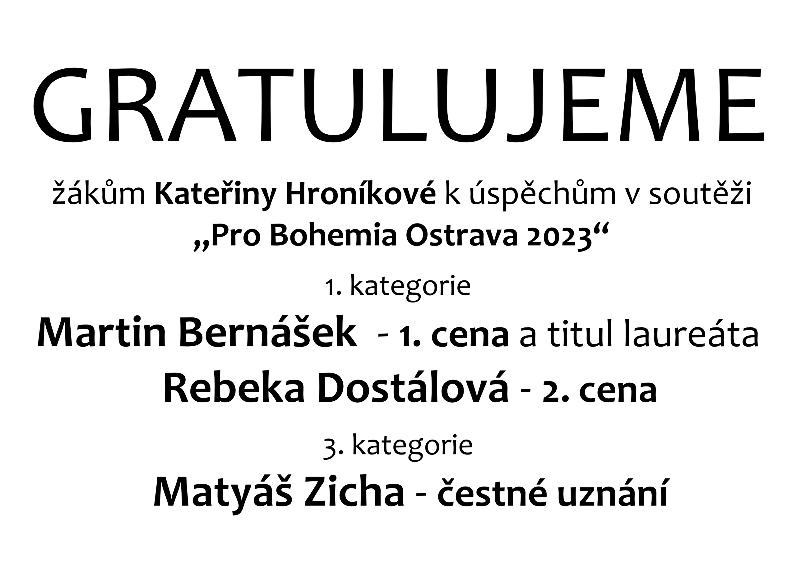 Gratulujeme – žákům Kateřiny Hroníkové k úspěchům v soutěži „Pro Bohemia Ostrava 2023“