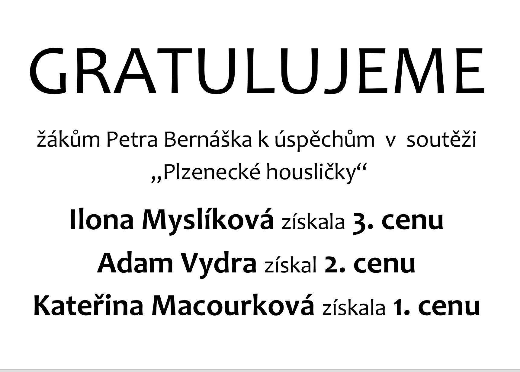 Gratulujeme – žákům Petra Bernáška k úspěchům v soutěži „Plzenecké housličky“