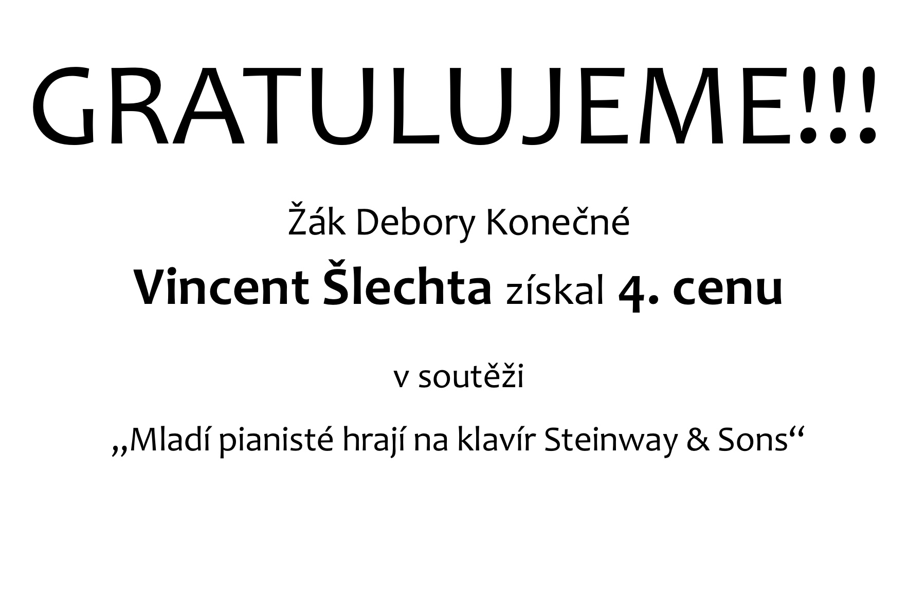 Gratulujeme – Vincent Šlechta získal 4. cenu v soutěži „Mladí pianisté hrají na klavír Steinway &  Sons“