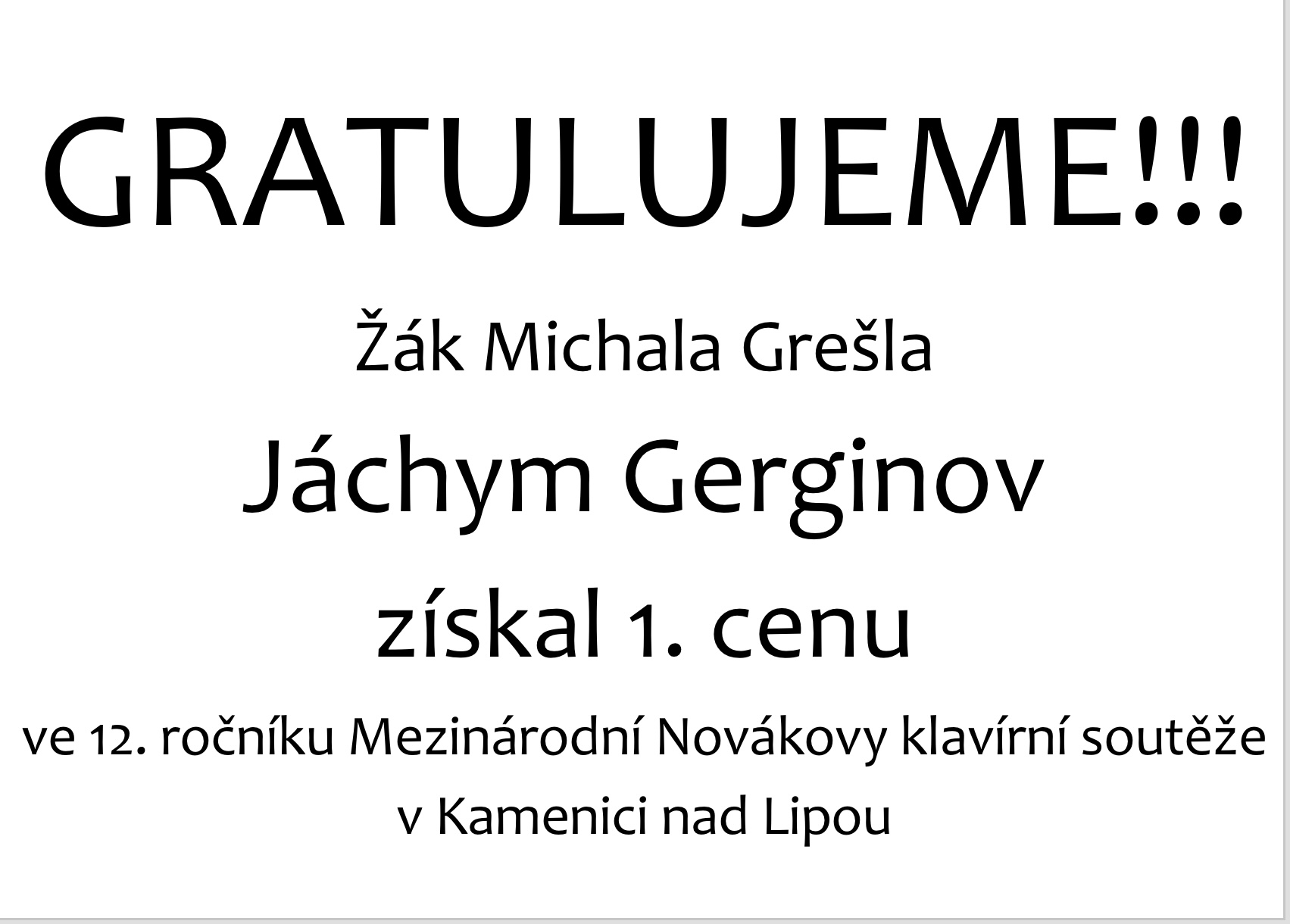 Gratulujeme – Jáchym Gerginov záskal 1.cenu ve 12. ročníku Mezinárodní Novákovy klavírní soutěže v Kamenici nad Lipou