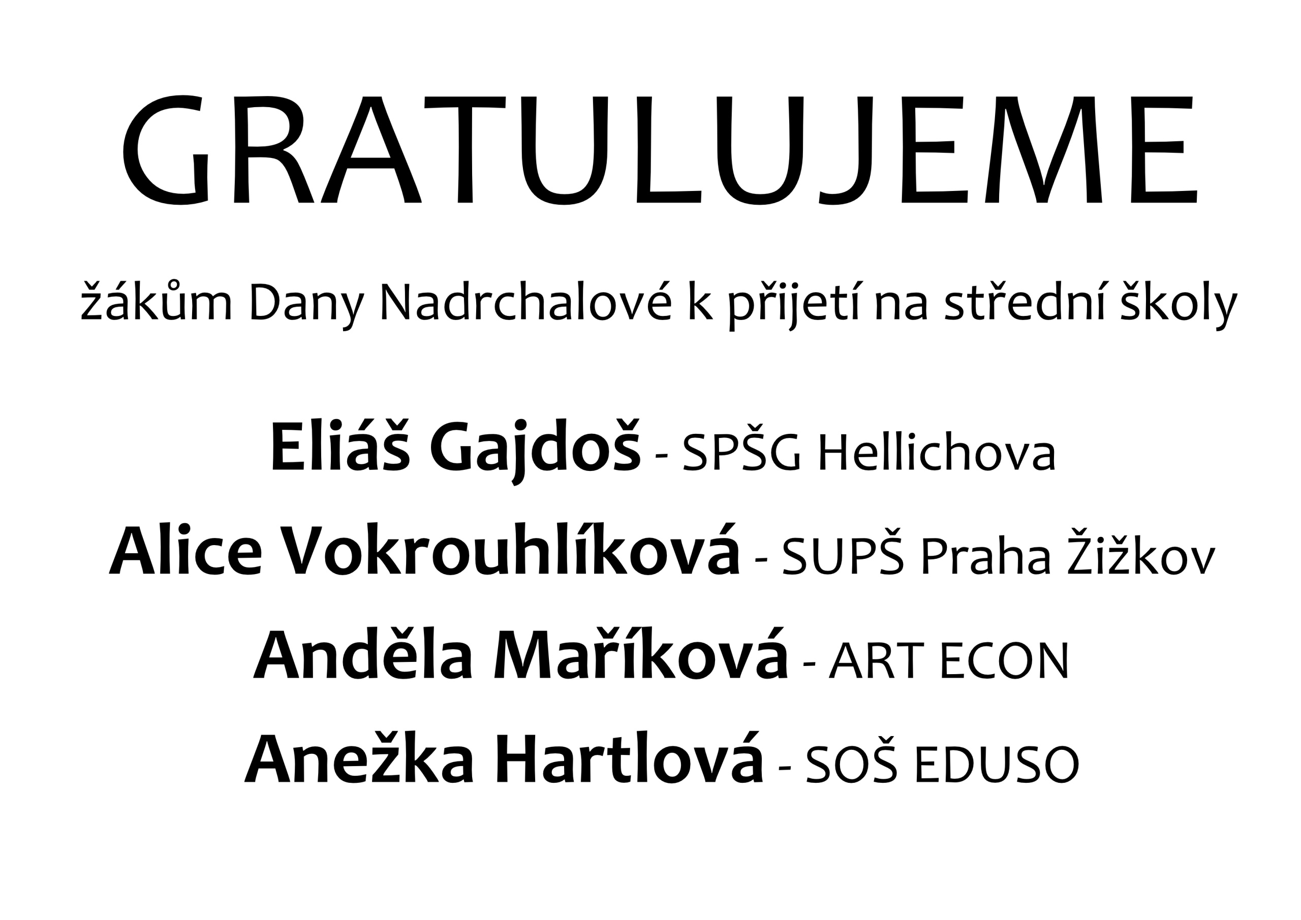 Gratulujeme – žákům Dany nadrchalové k přijetí na střední školy