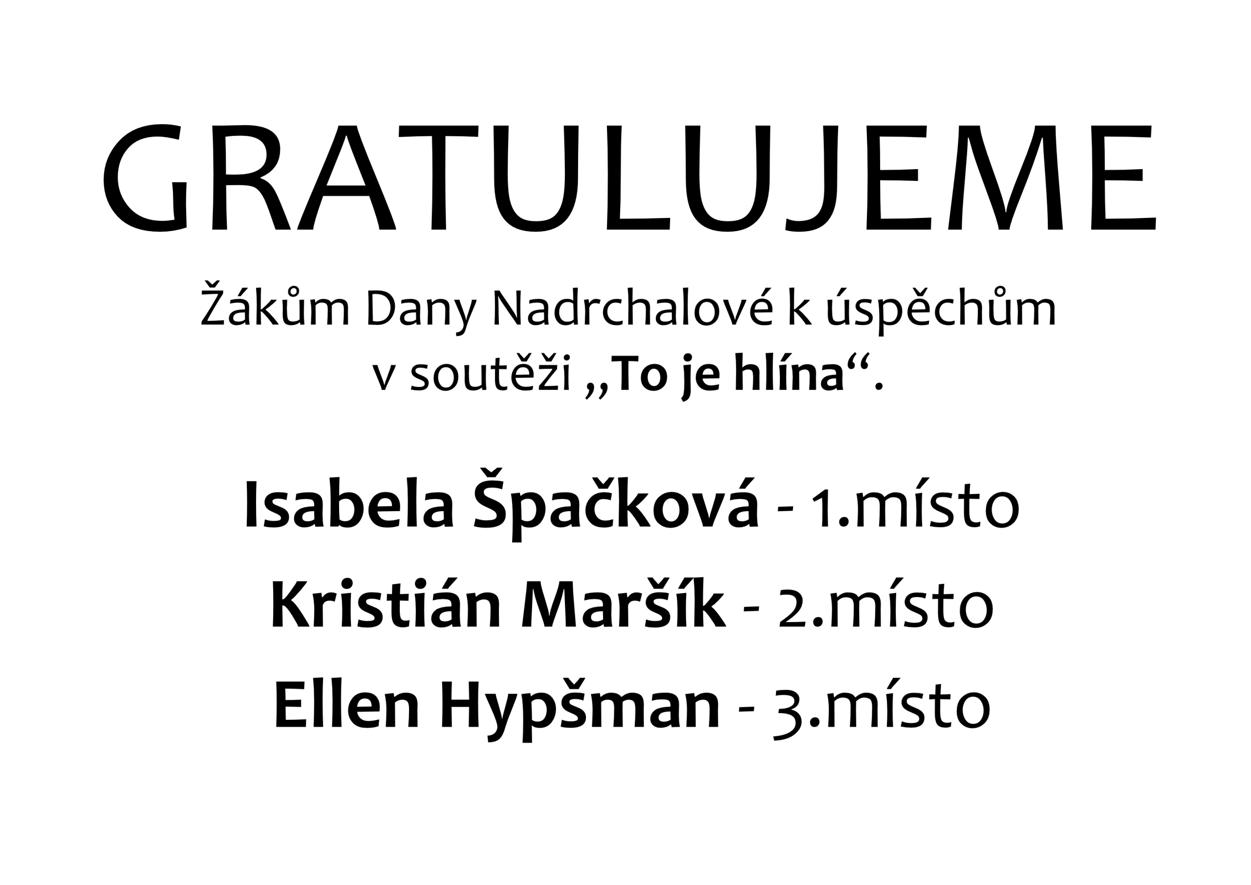 Gratulujeme – žákům Dany nadrchalové k úspěchům v soutěži „To je hlína“