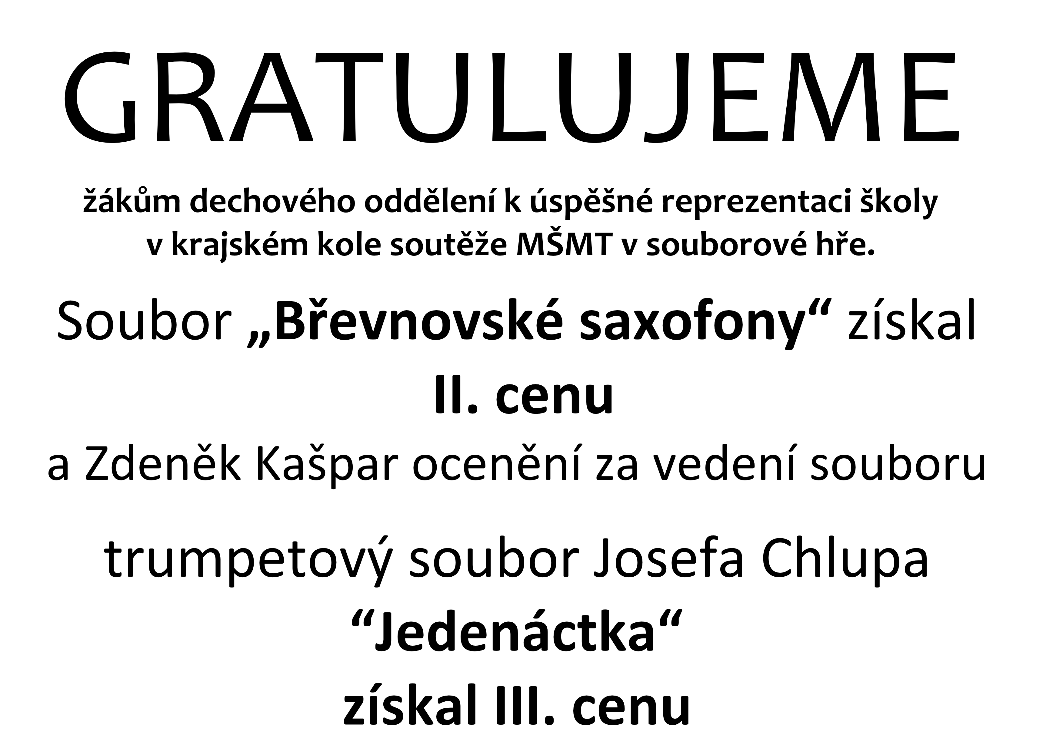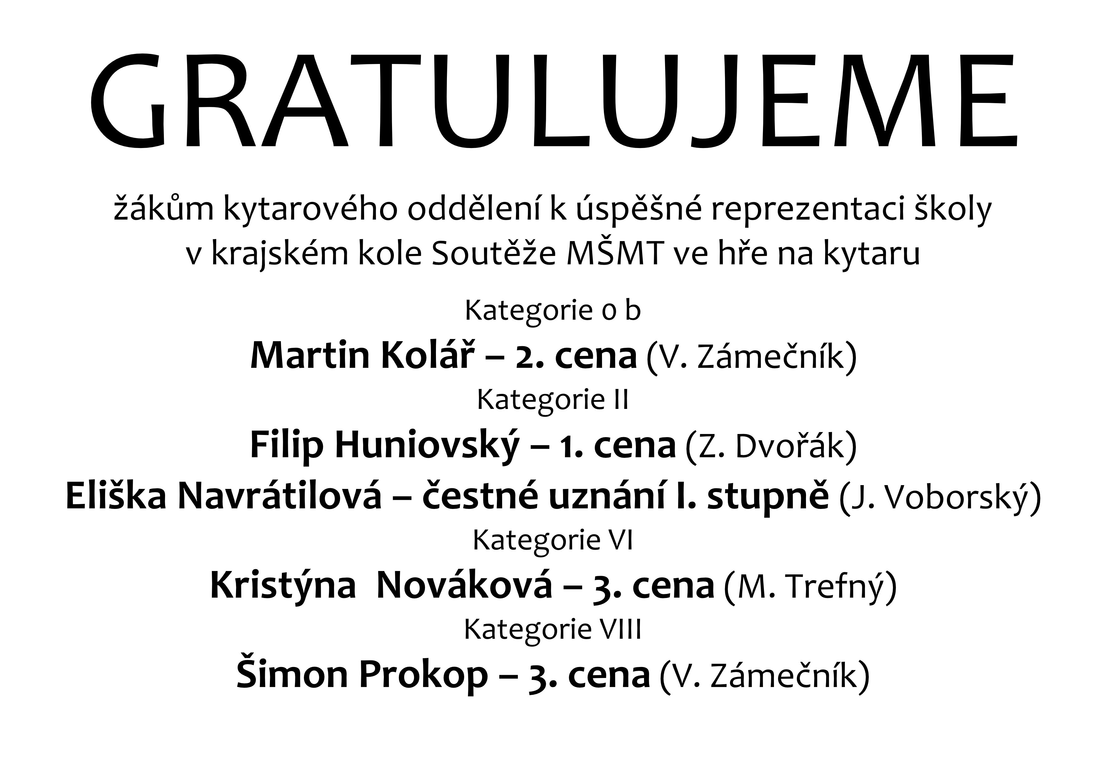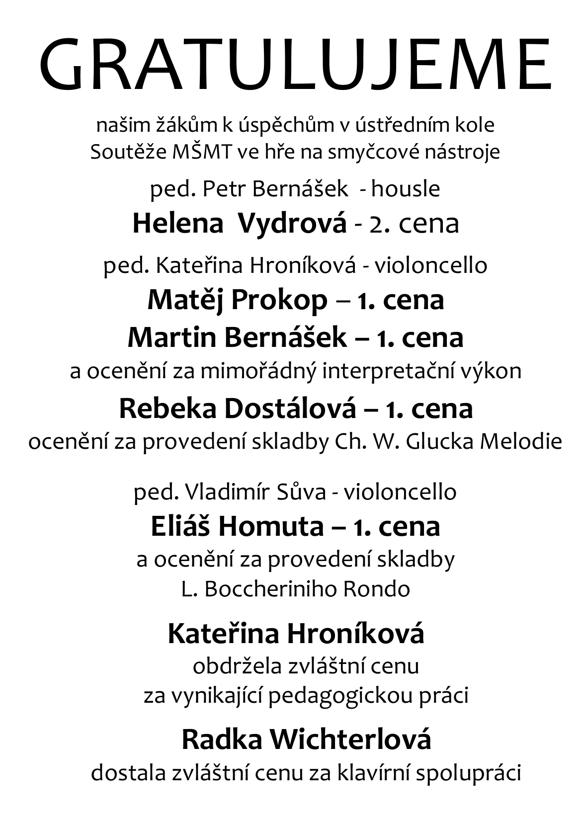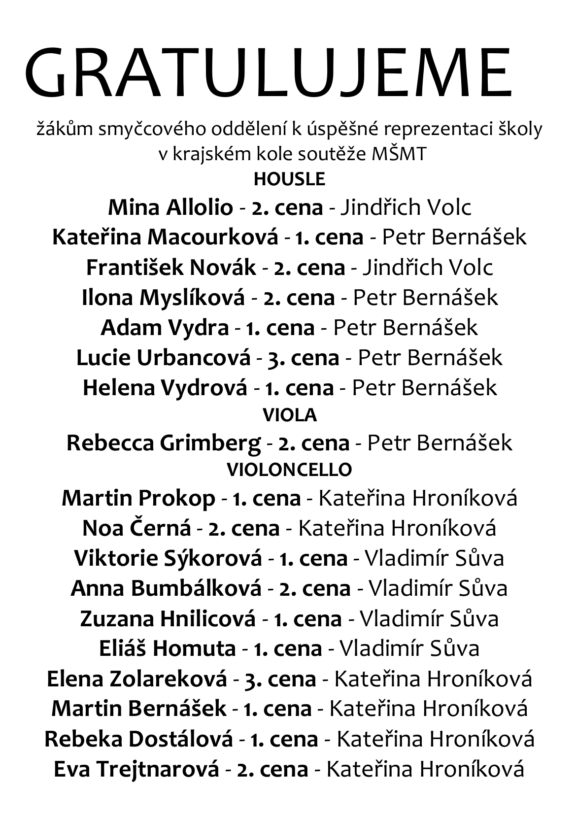Gratulujeme – žákům smyčcového oddělení k úspěšné reprezentaci školy v krajském kole soutěže MŠMT