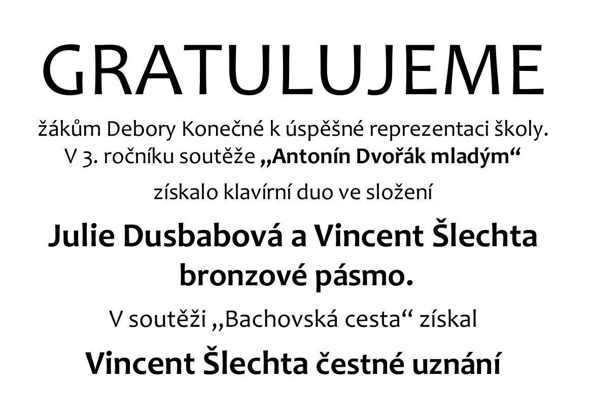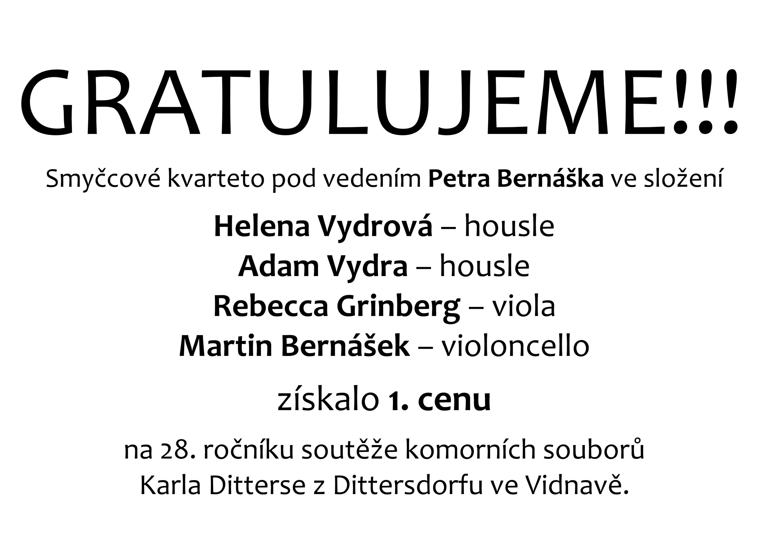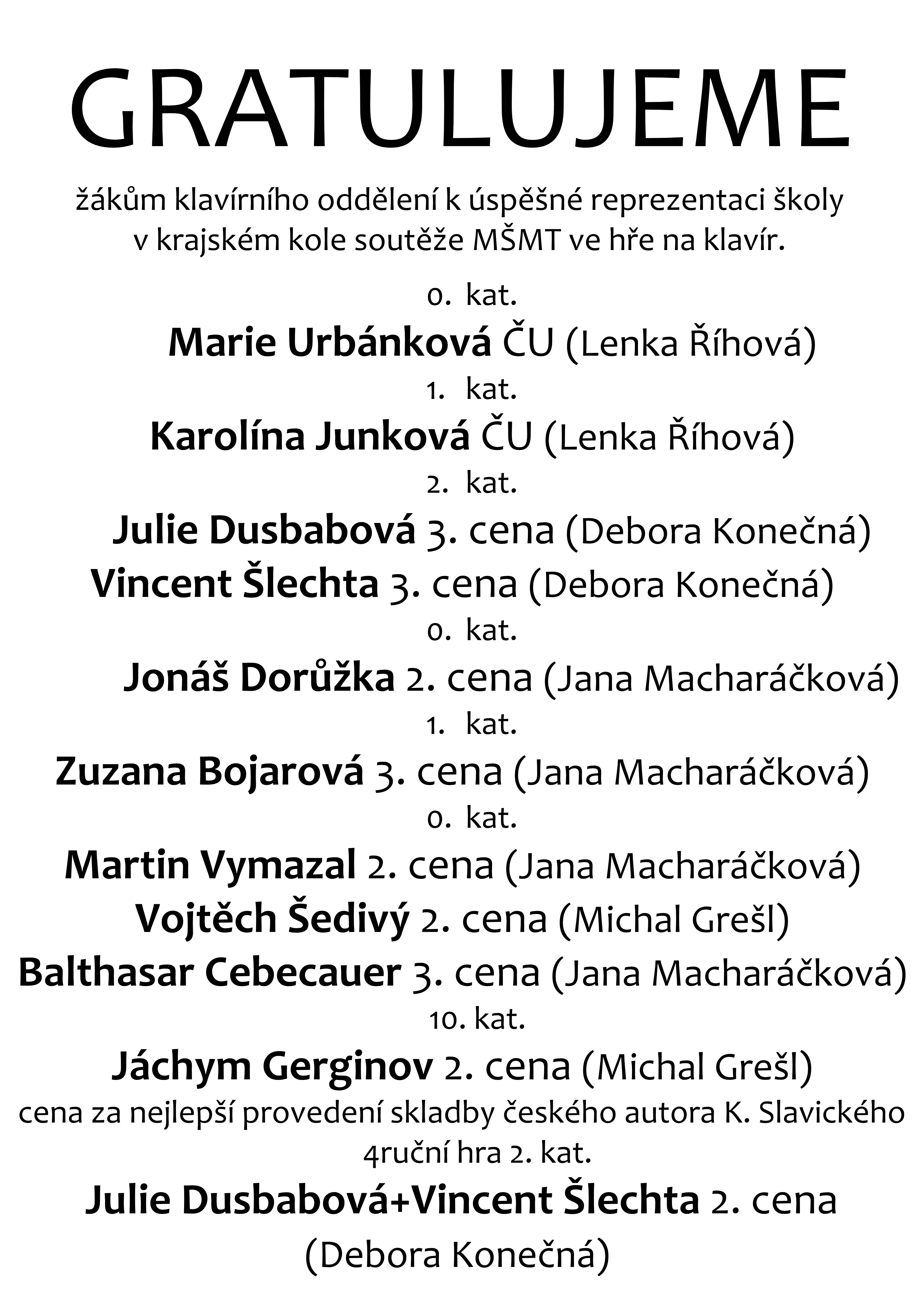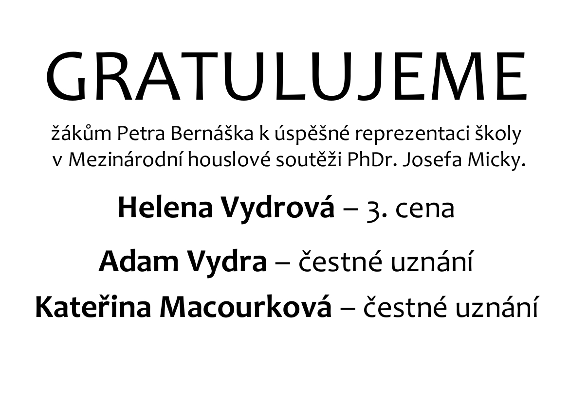 Gratulujeme – žákům smyčcového oddělení k úspěšné reprezentaci školy v krajském kole soutěže MŠMT