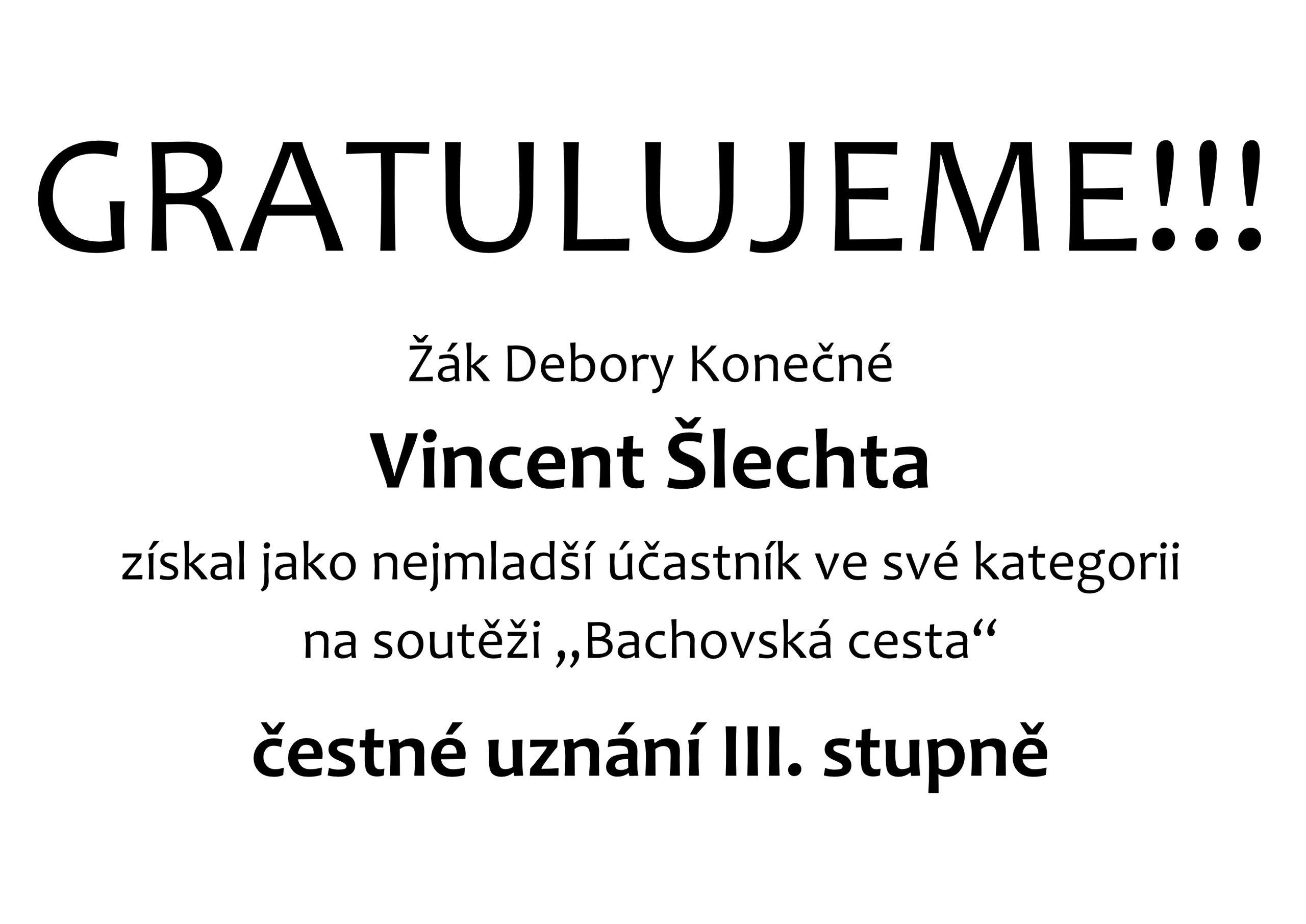 Gratulujeme – Vincentu Šlechtovi – nejmladšímu učastníkovi své kategorie v soutěži „Bachovská cesta“