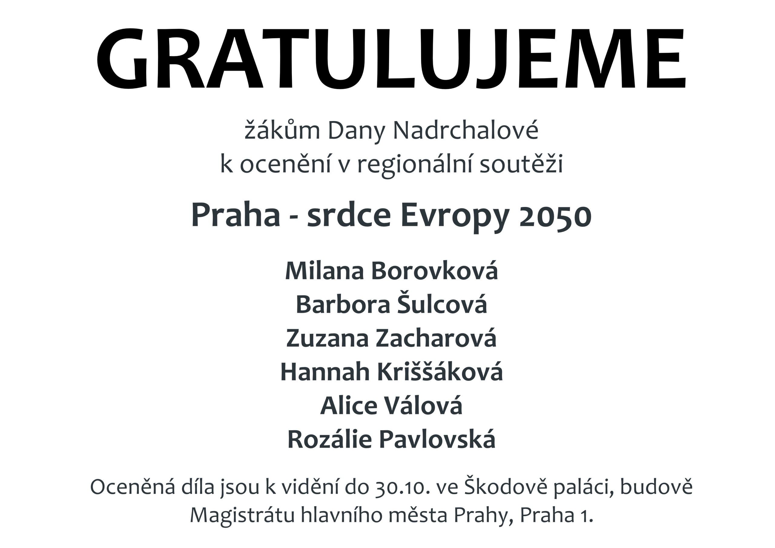 Gratulujeme – žákům Dany Nadrchalové k ocenění v regionální soutěži Praha – srdce Evropy 2050