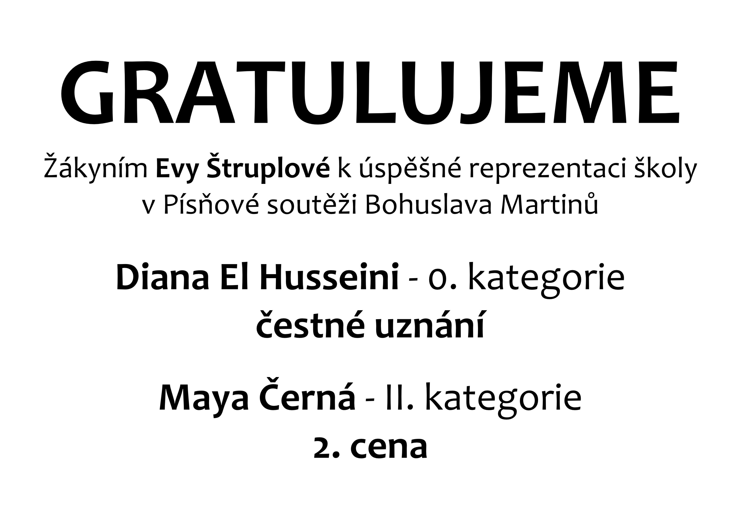 Gratulujeme – žákyním Evy Štruplové k úspěchům v v Písňové soutěži Bohuslava Martinů