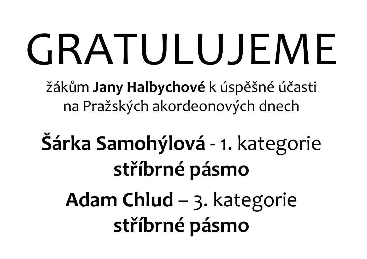 Gratulujeme – žákům Jany Halbychové k úspěchům na Pražských akordeonových dnech